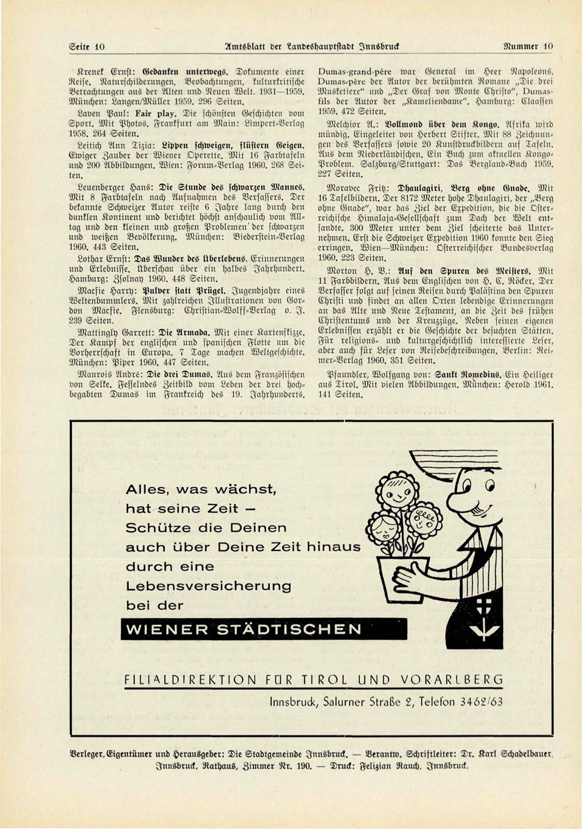 Verleger,Eigentümer nnd Herausgeber: Die Stadtgemeiude Iunsbrucl.