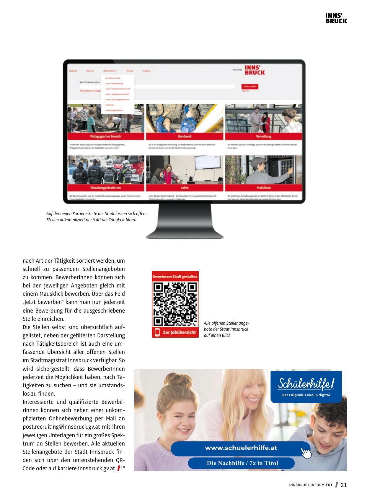 Stellenangebote der Stadt Innsbruck finden sich über den untenstehenden QRCode oder auf karriere.innsbruck.gv.at. FB
