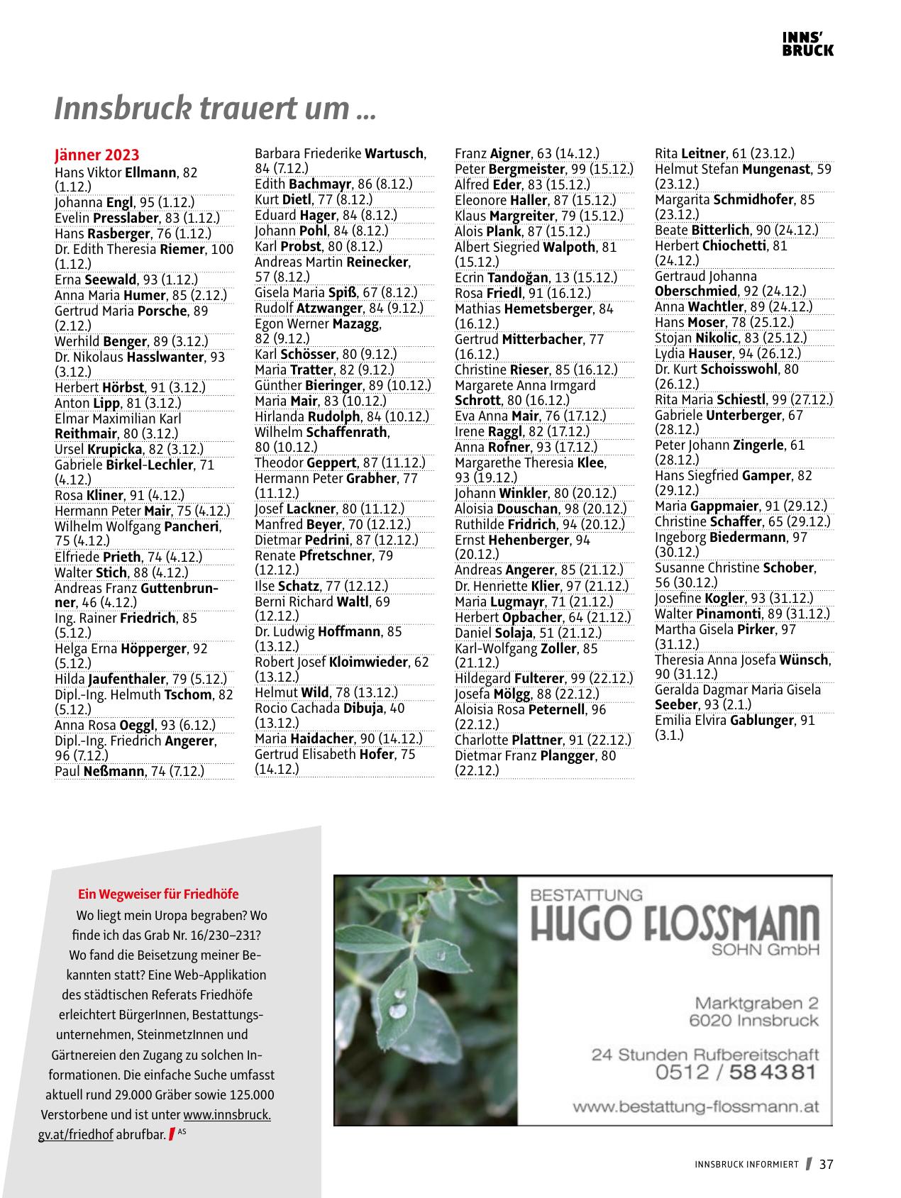 Verstorbene und ist unter www.innsbruck.