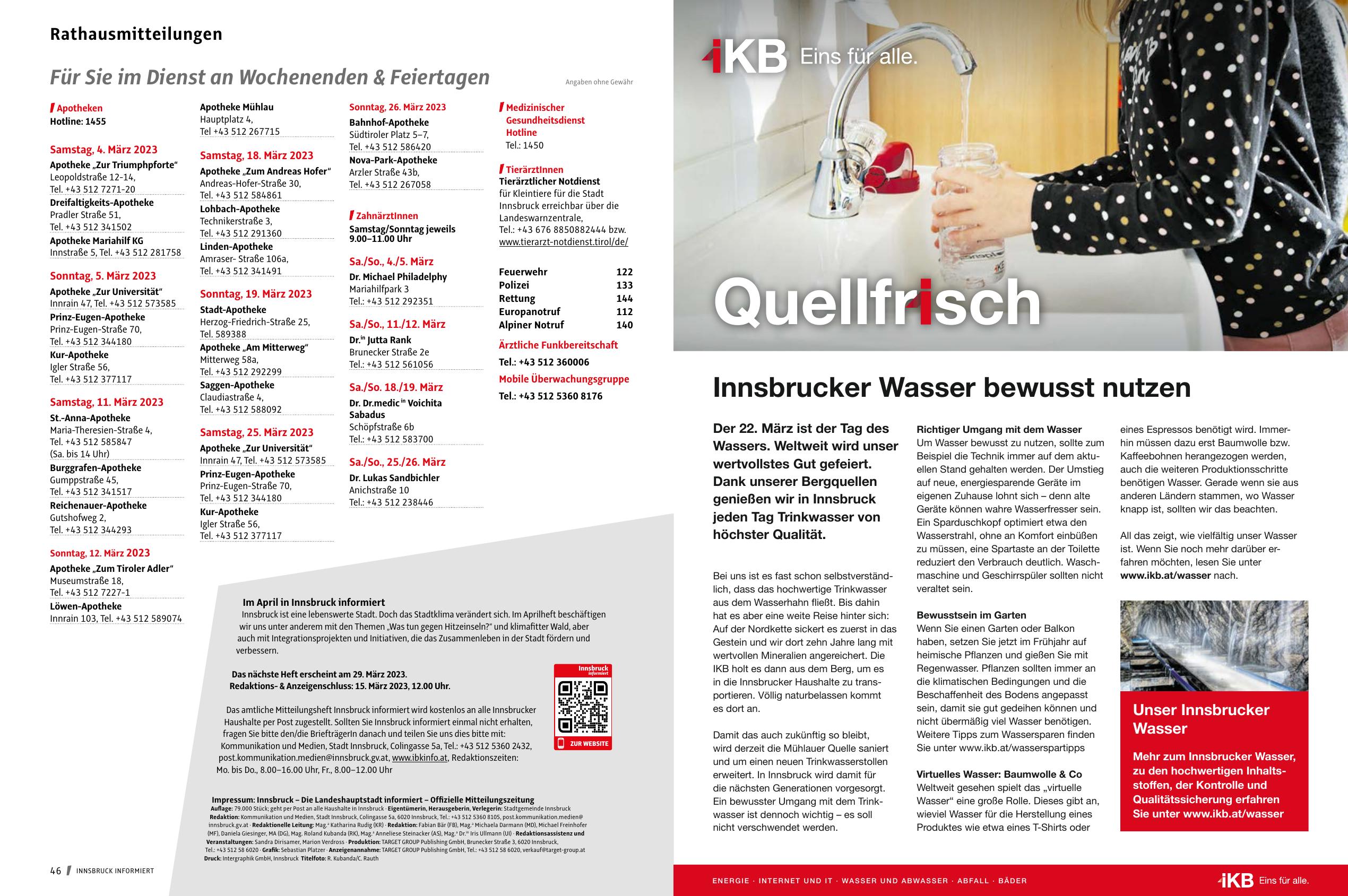 Impressum: Innsbruck – Die Landeshauptstadt informiert – Offizielle Mitteilungszeitung