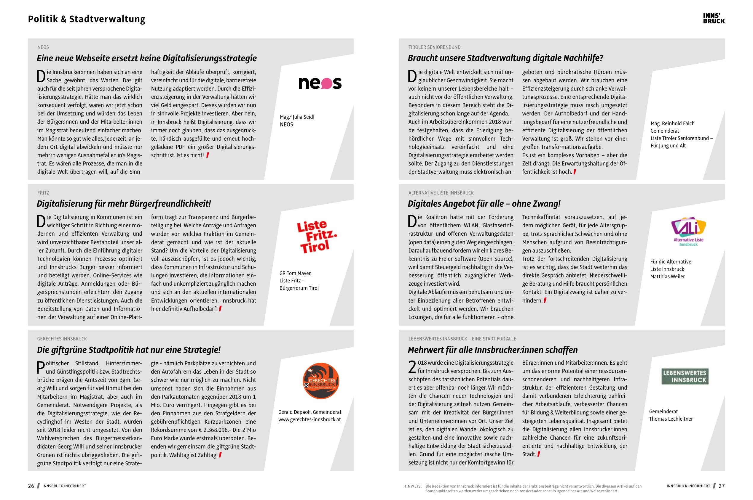 H I N W EI S : Die Redaktion von Innsbruck informiert ist für die Inhalte der Fraktionsbeiträge nicht verantwortlich. Die diversen Artikel auf den