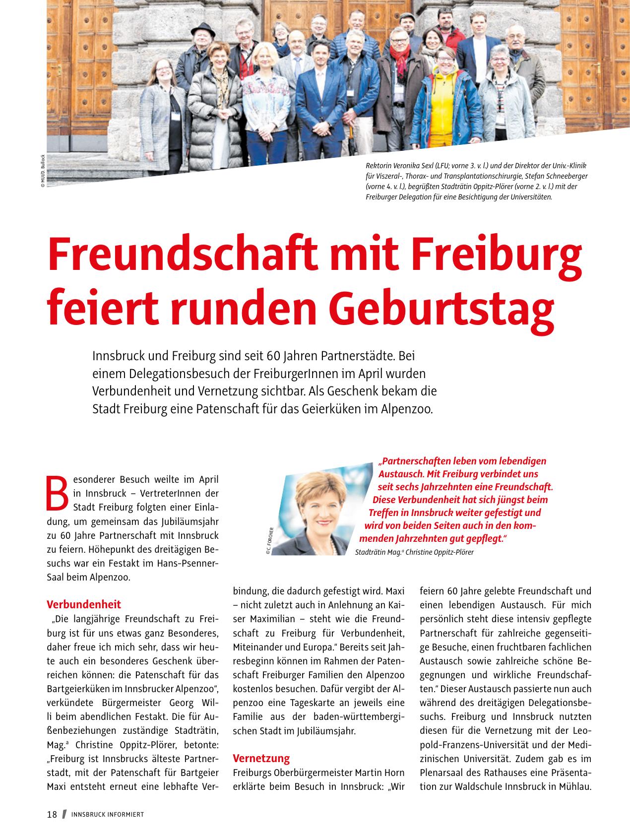 „Freiburg ist Innsbrucks älteste Partnerstadt, mit der Patenschaft für Bartgeier