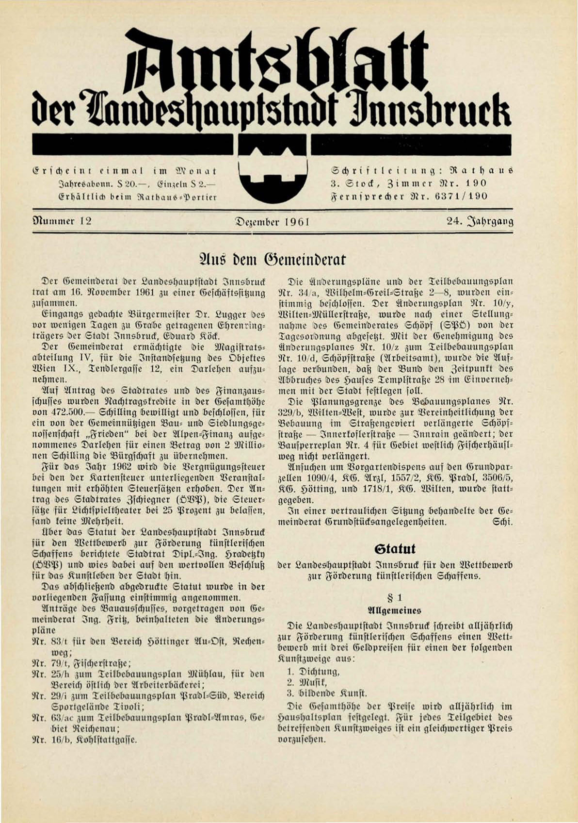 Über das Slalut der Landeshauptstadt Innsbruck