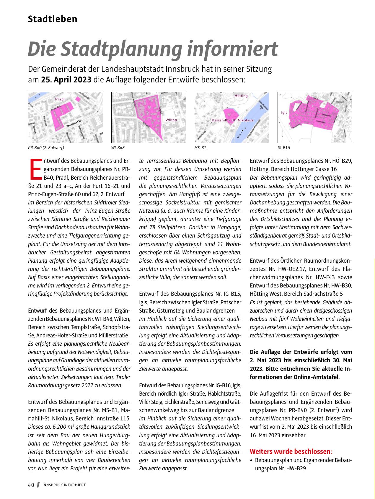 Die Auflagefrist für den Entwurf des Bebauungsplanes und Ergänzenden Bebauungsplanes Nr. PR-B40 (2. Entwurf) wird