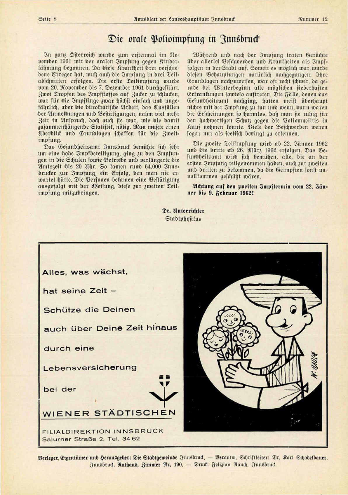 und die dritte ab 36. März 1962 erfolgen. Das Gesundheitsamt wird sich bemühen, alle, die an der