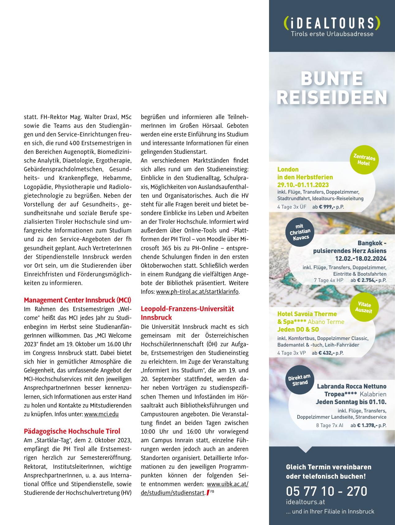 zu knüpfen. Infos unter: www.mci.edu