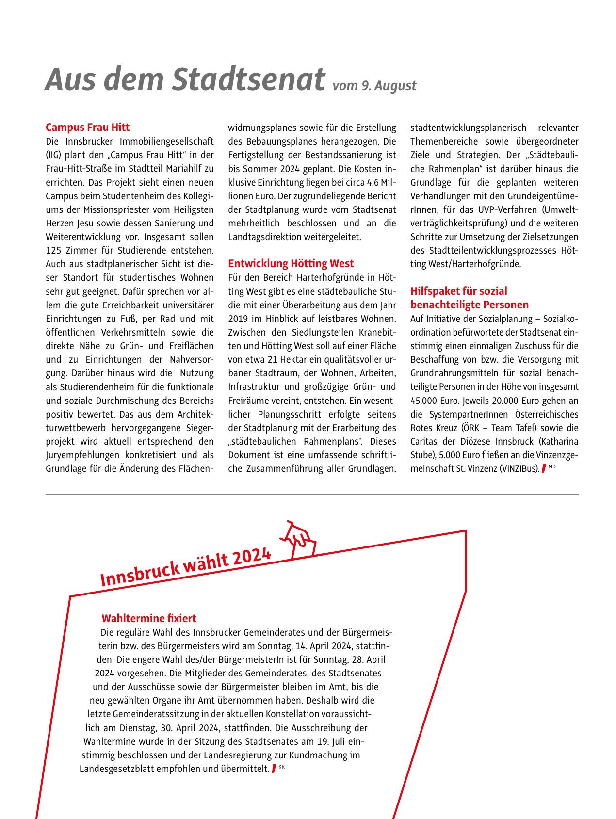 Aus dem Stadtsenat vom 9. August
