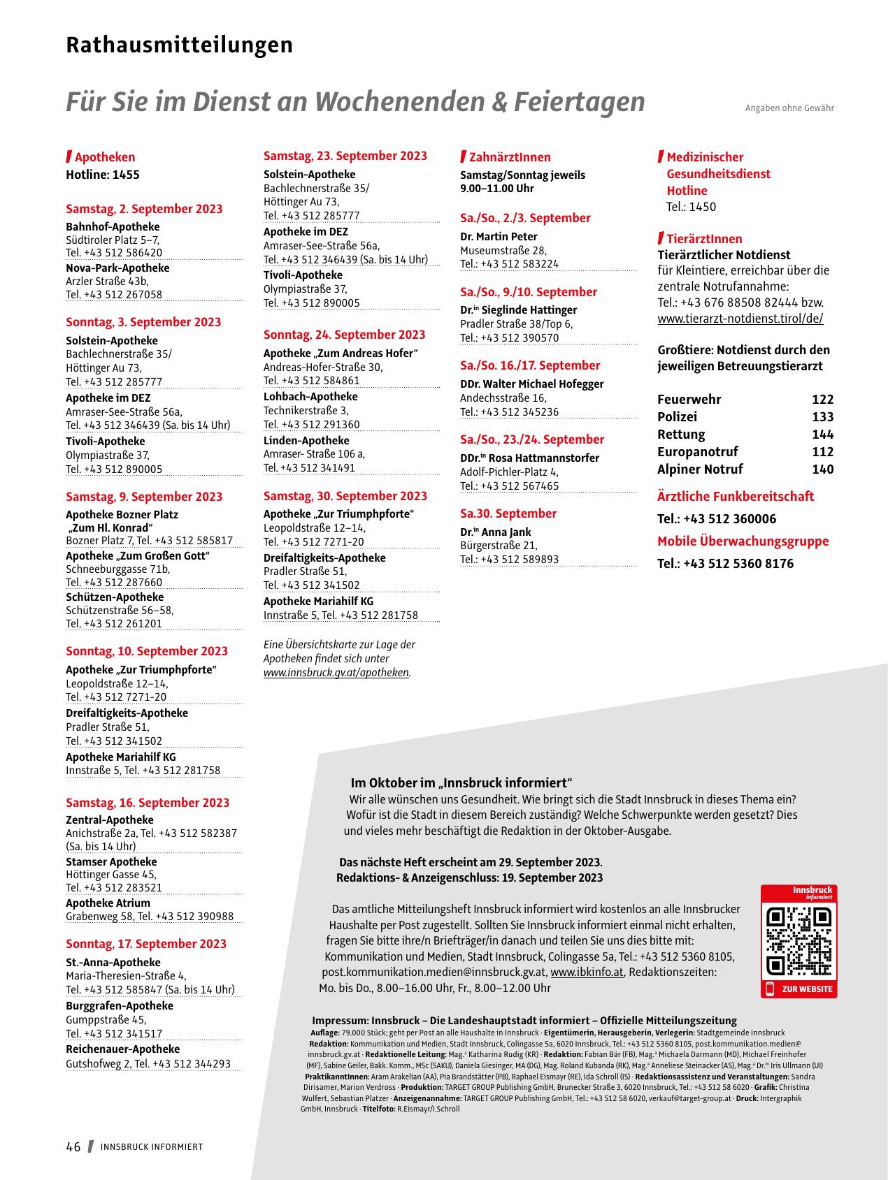 Impressum: Innsbruck – Die Landeshauptstadt informiert – Offizielle Mitteilungszeitung
