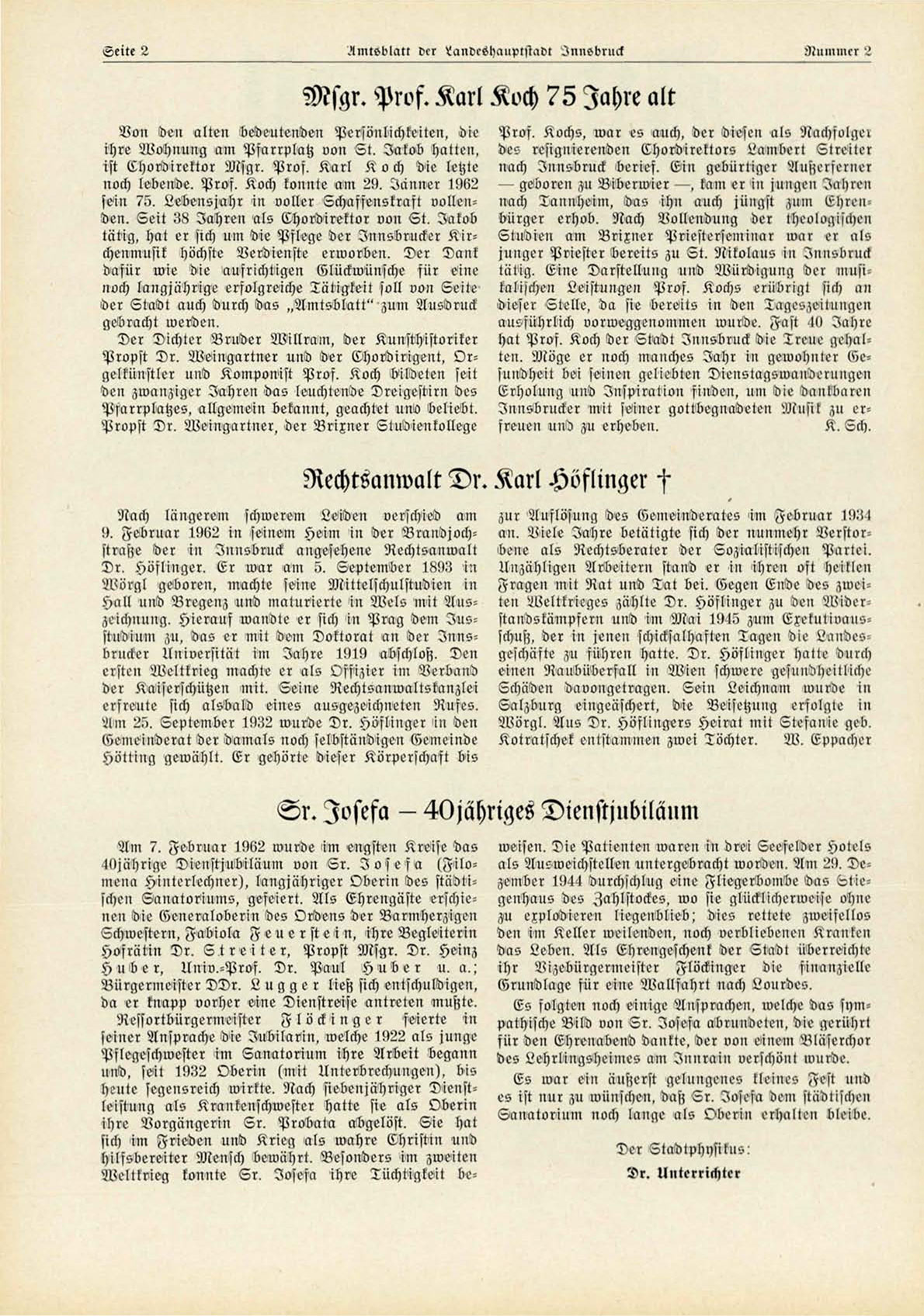 9. Februar 1962 in seinem Heim in der Vrandjochstraße der i n Innsbruck angesehene Rechtsanwalt