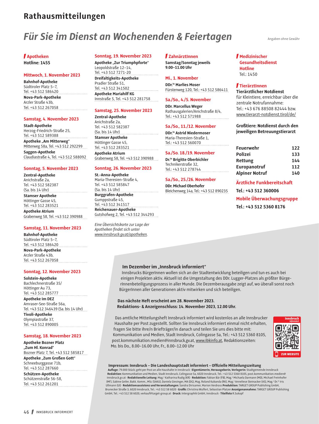Impressum: Innsbruck – Die Landeshauptstadt informiert – Offizielle Mitteilungszeitung