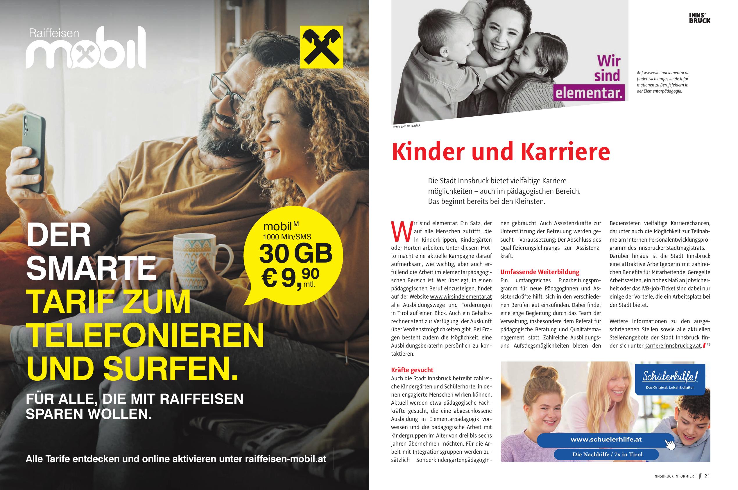 Stellenangebote der Stadt Innsbruck finden sich unter karriere .innsbruck .g v .at . FB
