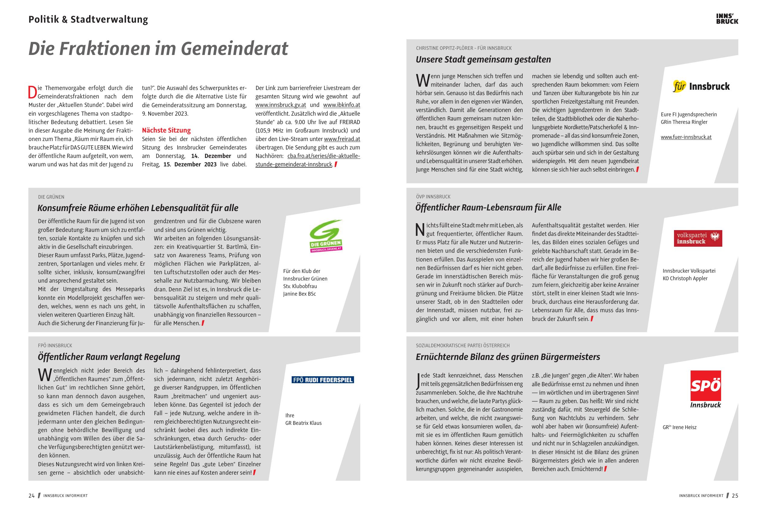 dran. Denn Ziel ist es, in Innsbruck die Lebensqualität zu steigern und mehr qualitätsvolle Aufenthaltsflächen zu schaffen,