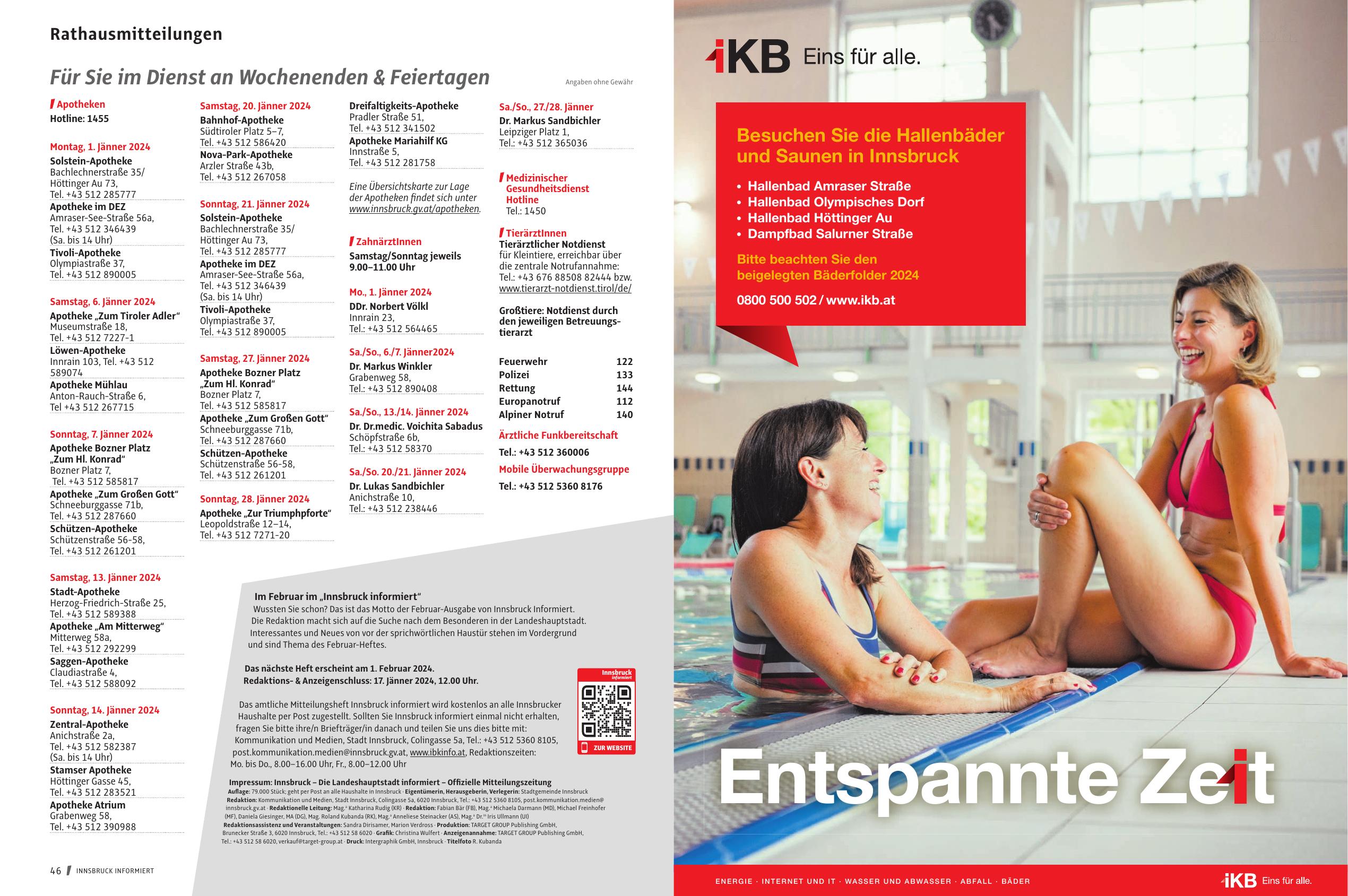 Impressum: Innsbruck – Die Landeshauptstadt informiert – Offizielle Mitteilungszeitung