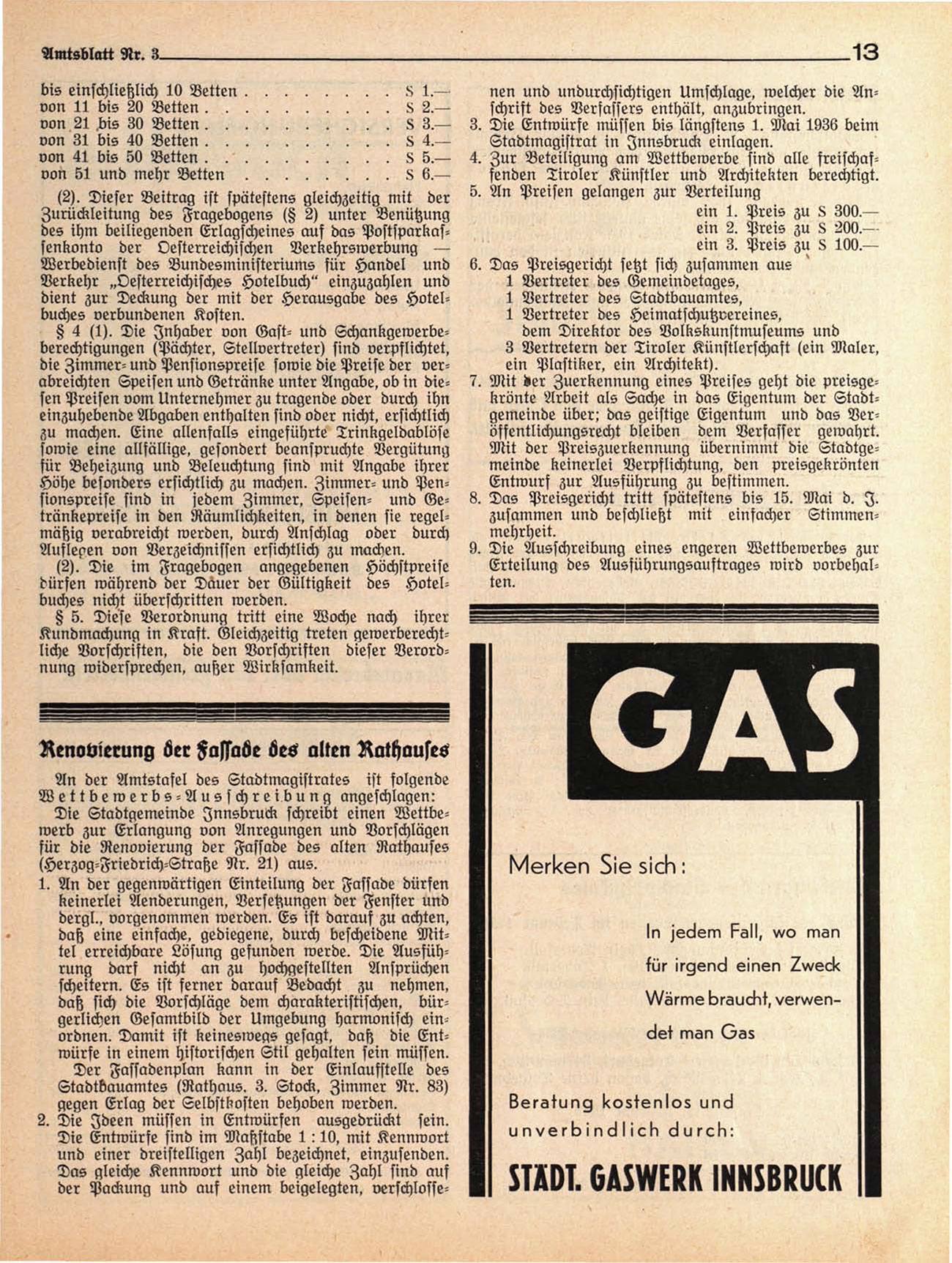 Die Stadtgemeinde Innsbruck schreibt einen Wettbewerb zur Erlangung von Anregungen und Vorschlägen