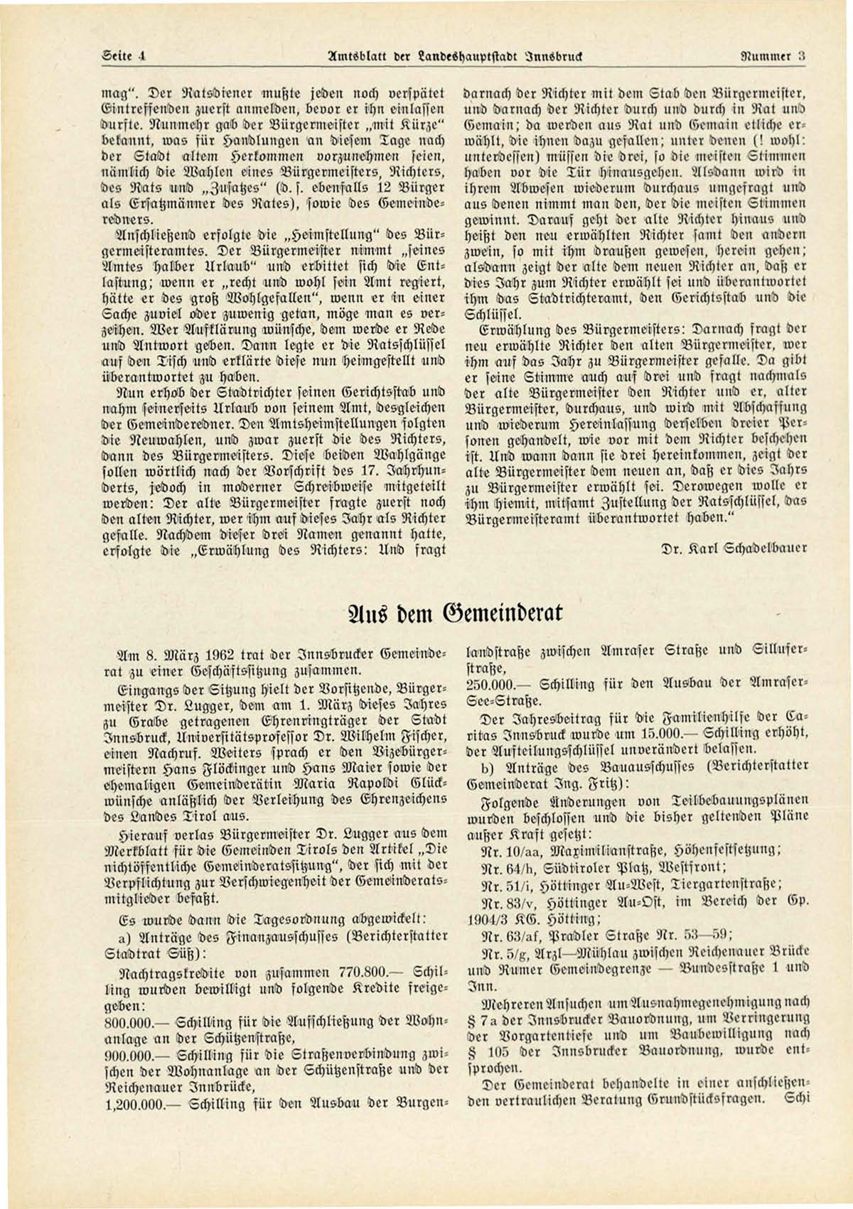 Am 8. März 1962 trat der Innsbrucker Gemeinderat zu einer Geschäftssitzung zusammen.