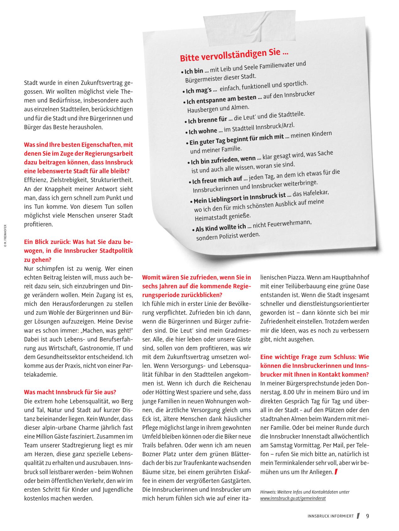 können die Innsbruckerinnen und Innsbrucker mit Ihnen in Kontakt kommen?