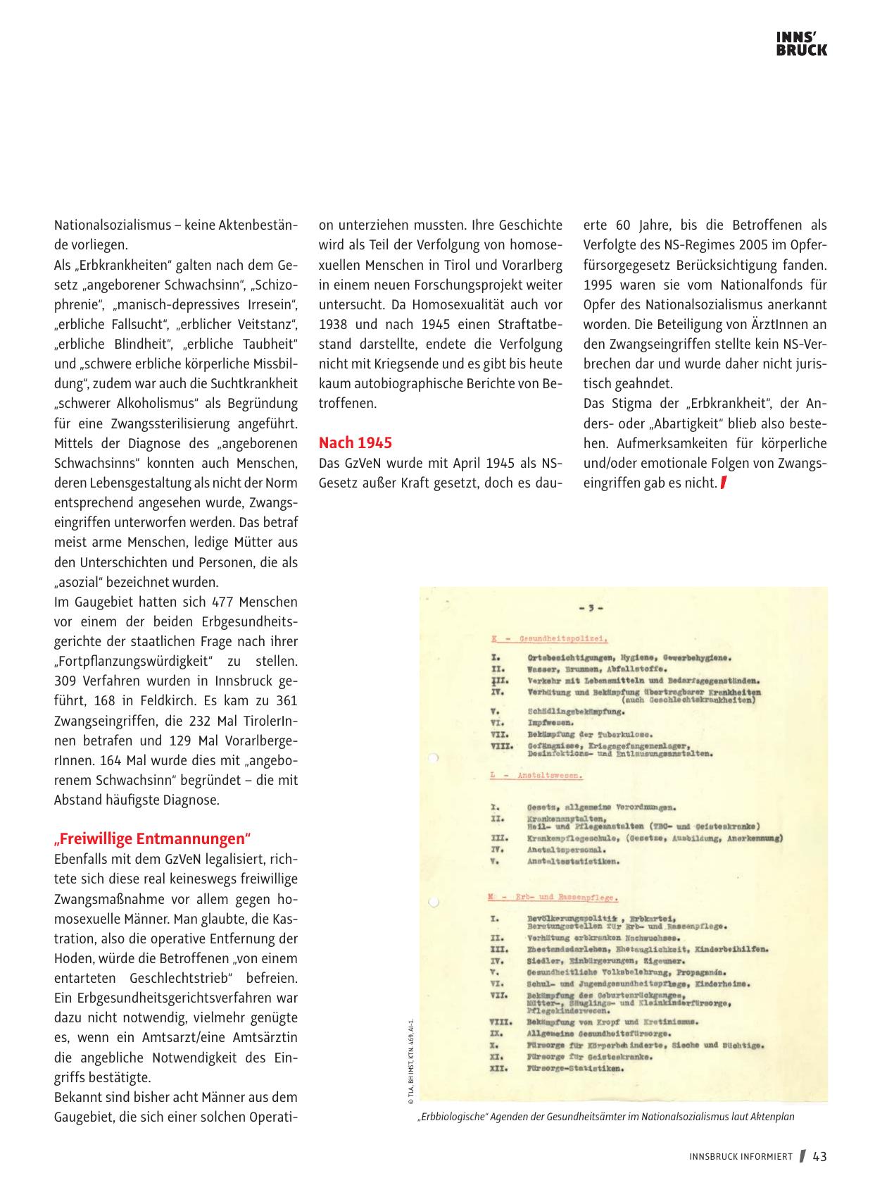 Zwangseingriffen, die 232 Mal TirolerInnen betrafen und 129 Mal VorarlbergerInnen. 164 Mal wurde dies mit „angeborenem Schwachsinn“ begründet – die mit