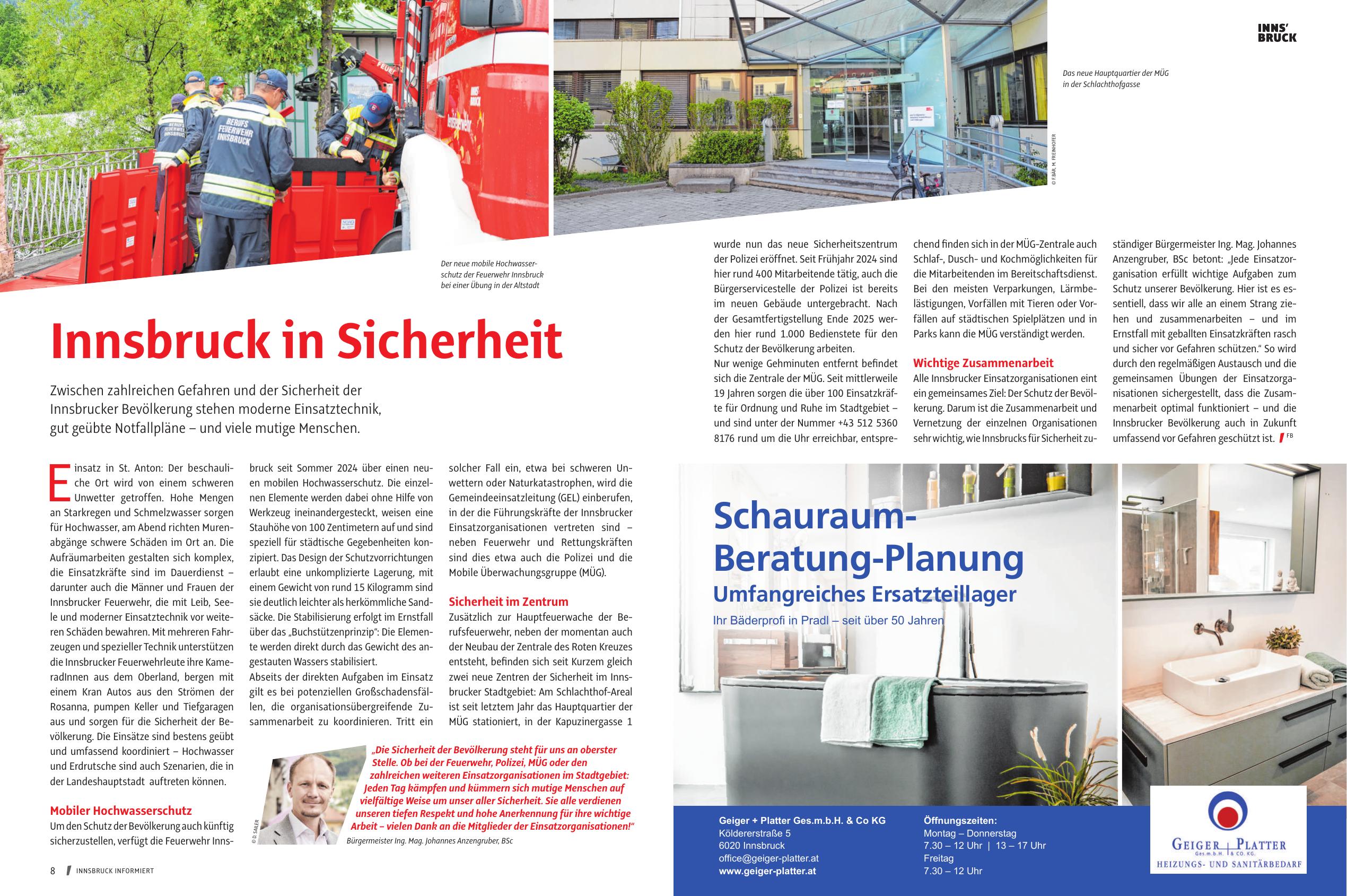 Innsbrucker Bevölkerung stehen moderne Einsatztechnik,