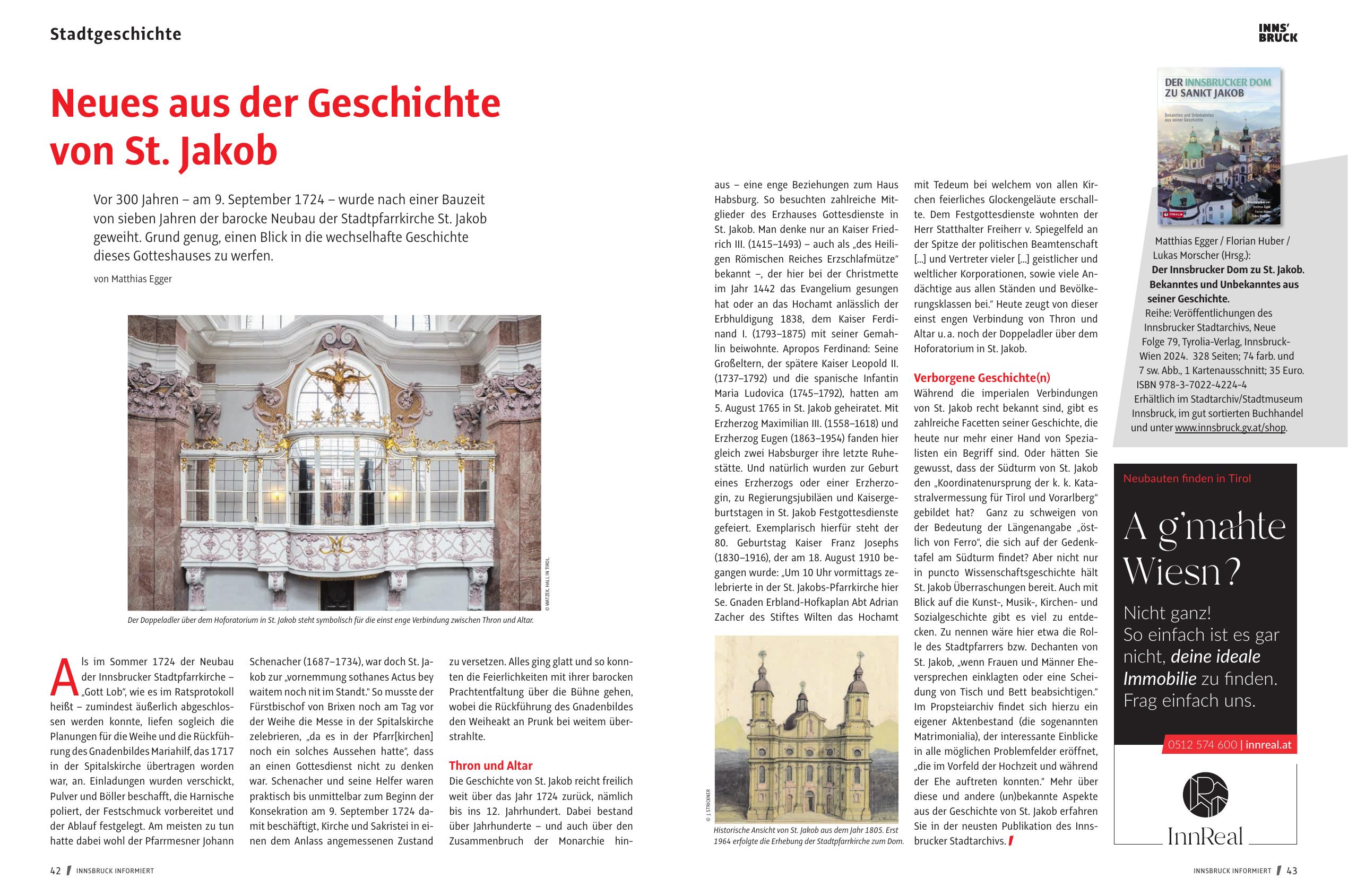 seine Bedeutung für die Stadt Innsbruck und die Diözese entscheidend geprägt haben. Die Mauern von St. Jakob wissen nicht nur von bedeutenden