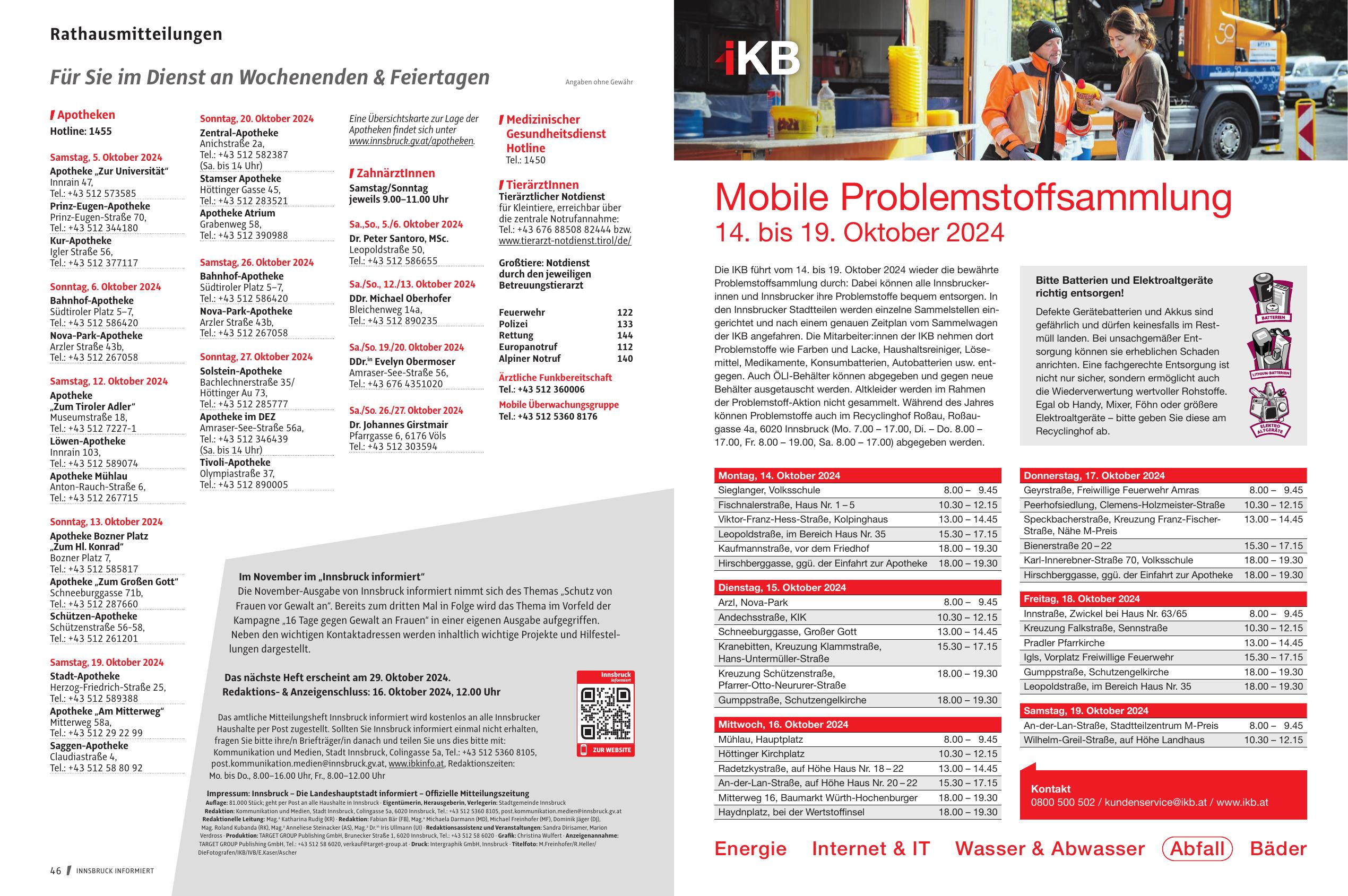 Impressum: Innsbruck – Die Landeshauptstadt informiert – Offizielle Mitteilungszeitung