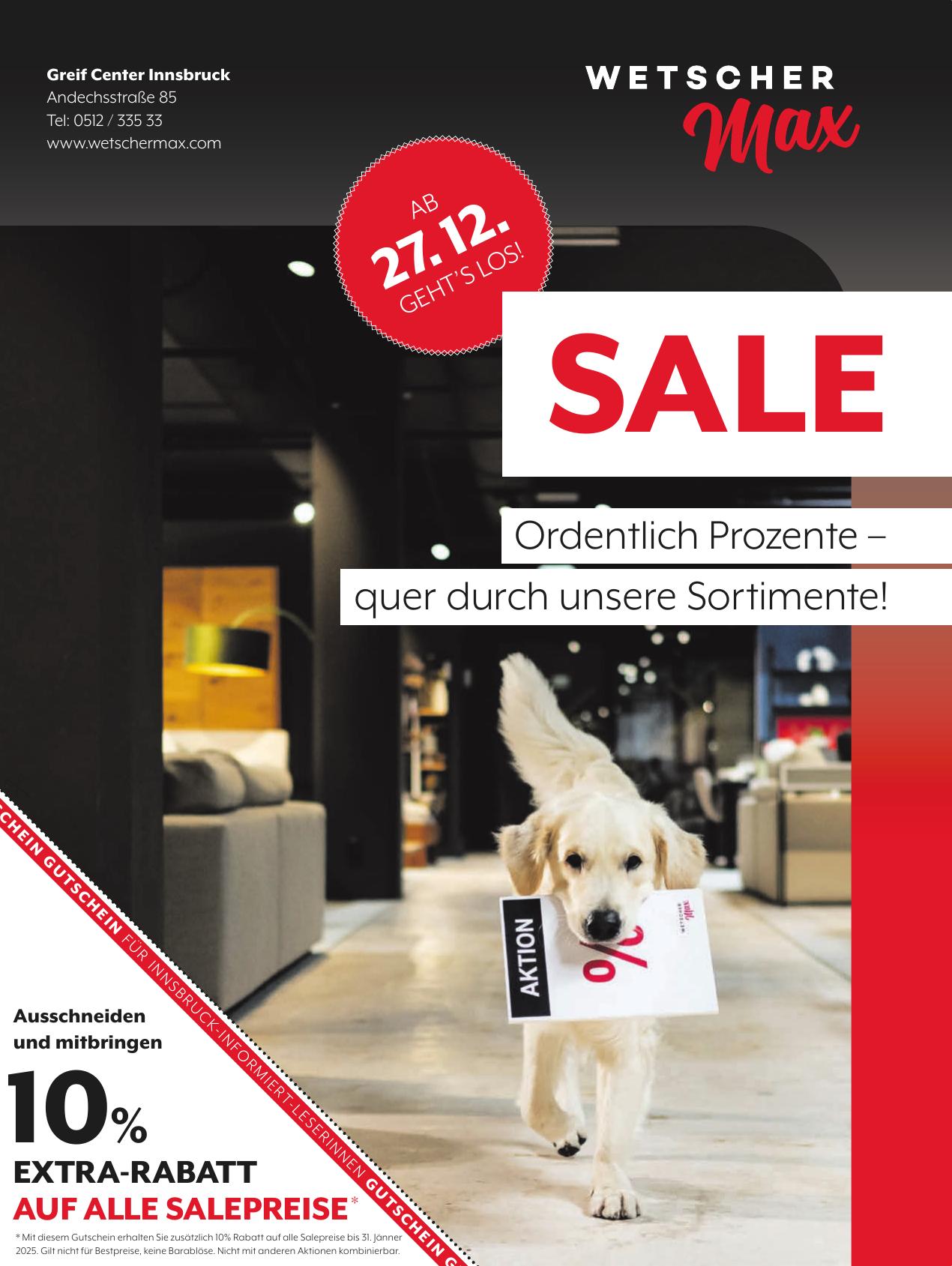 * Mit diesem Gutschein erhalten Sie zusätzlich 10% Rabatt auf alle Salepreise bis 31. Jänner