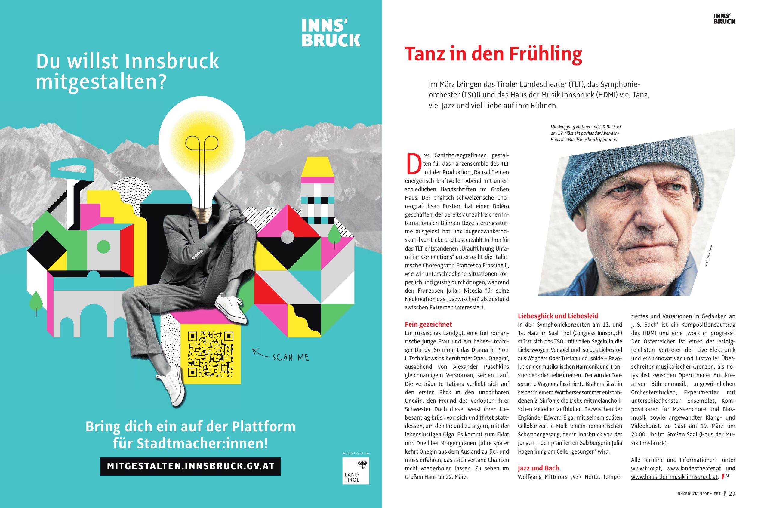 Im März bringen das Tiroler Landestheater (TLT), das Symphonieorchester (TSOI) und das Haus der Musik Innsbruck (HDMI) viel Tanz,
