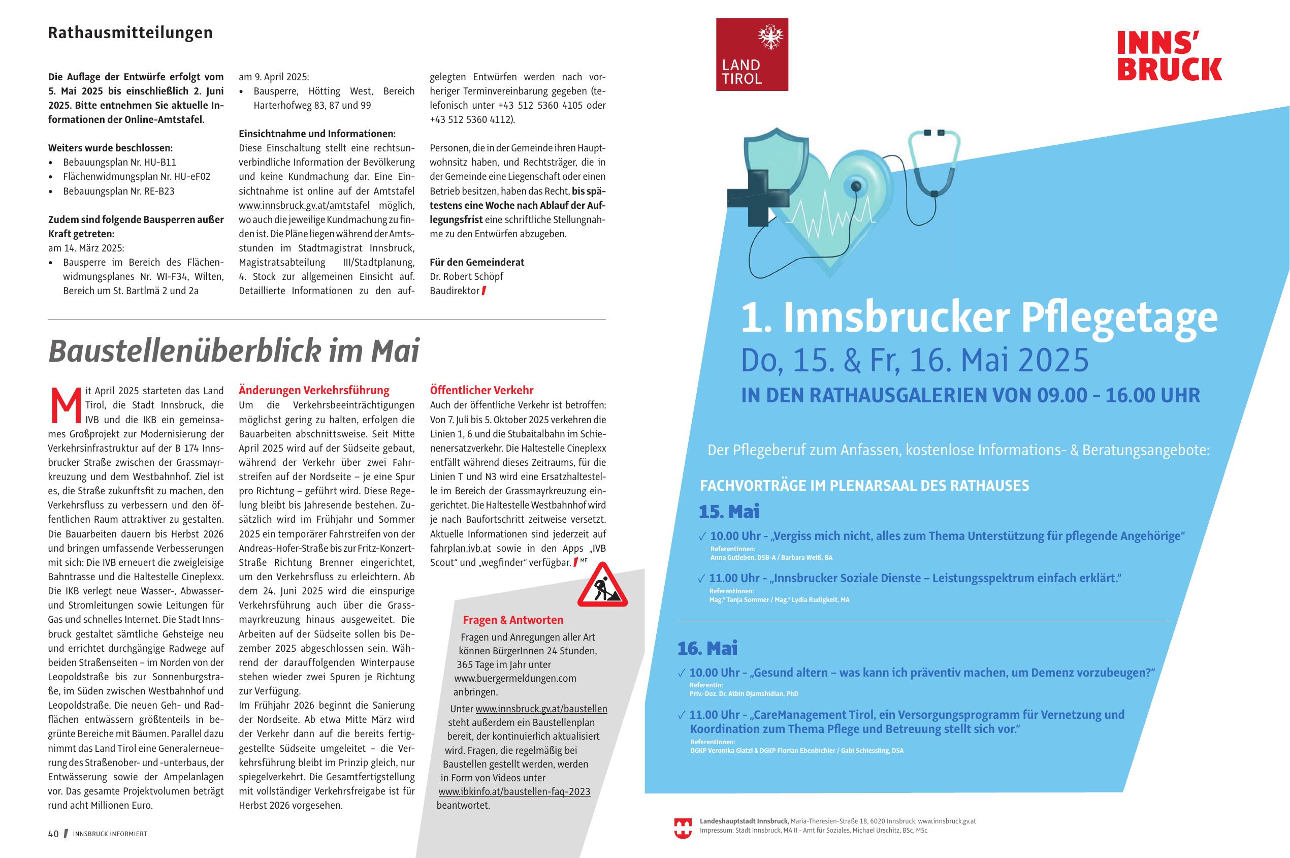 wo auch die jeweilige Kundmachung zu finden ist. Die Pläne liegen während der Amtsstunden im Stadtmagistrat Innsbruck,