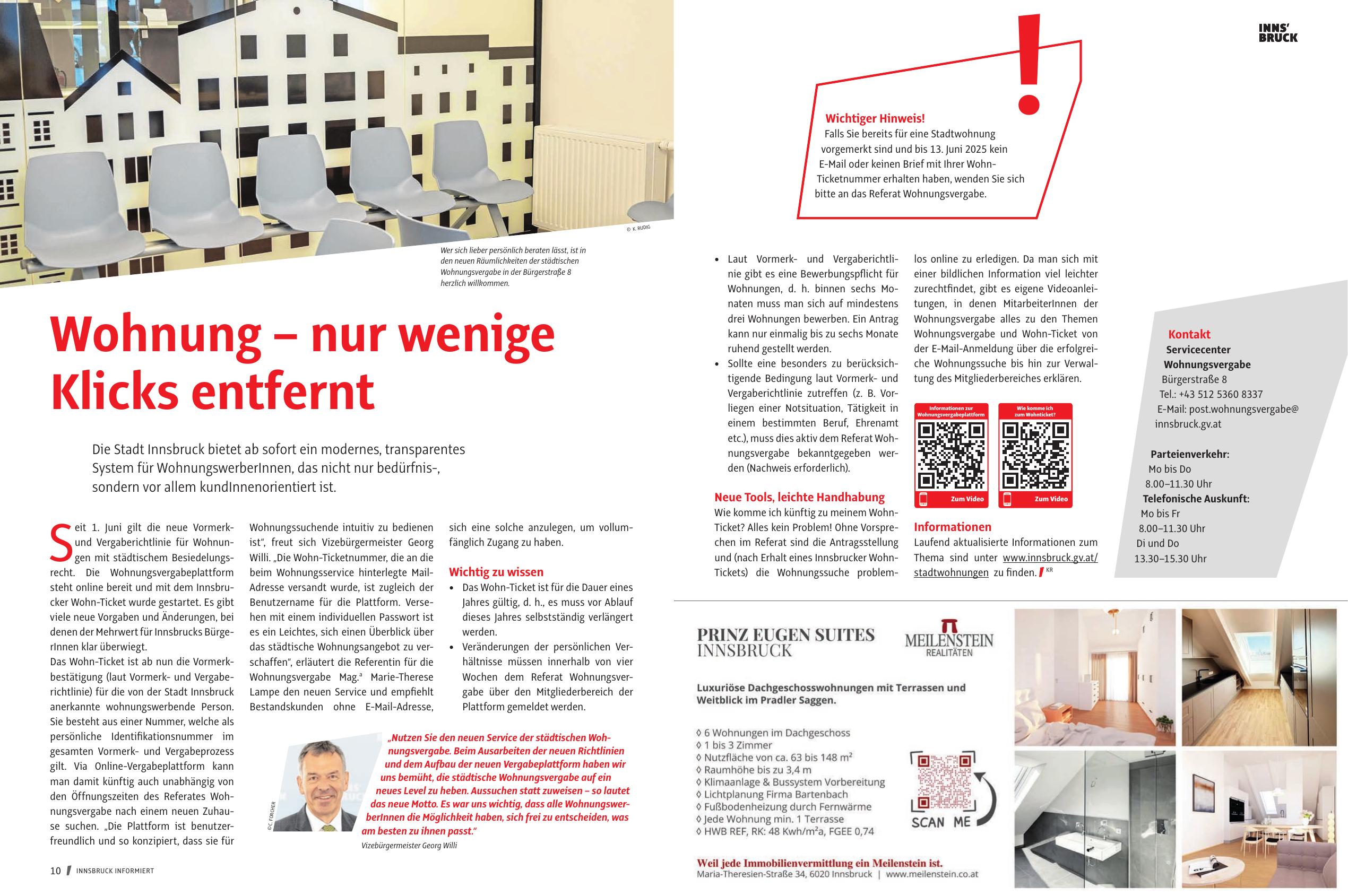 steht online bereit und mit dem Innsbrucker Wohn-Ticket wurde gestartet. Es gibt
