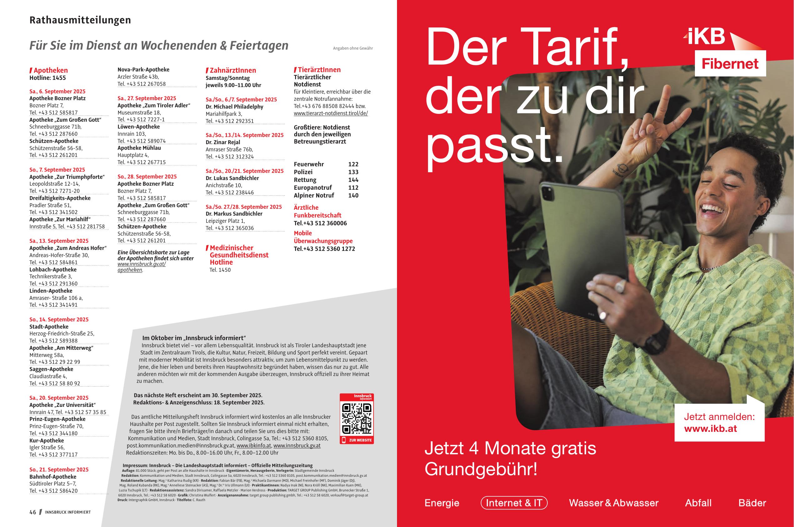 Impressum: Innsbruck – Die Landeshauptstadt informiert – Offizielle Mitteilungszeitung