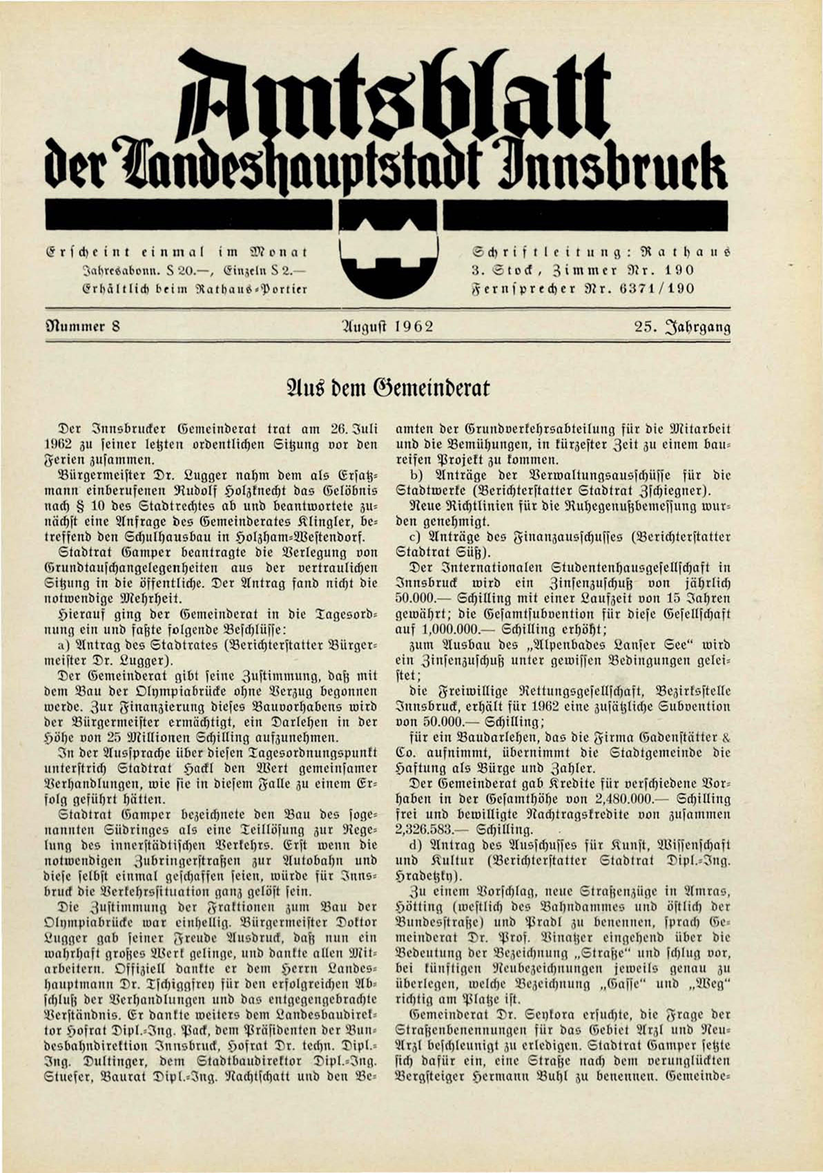 Der Innsbrucker Gemeinderat trat am 26. J u l i