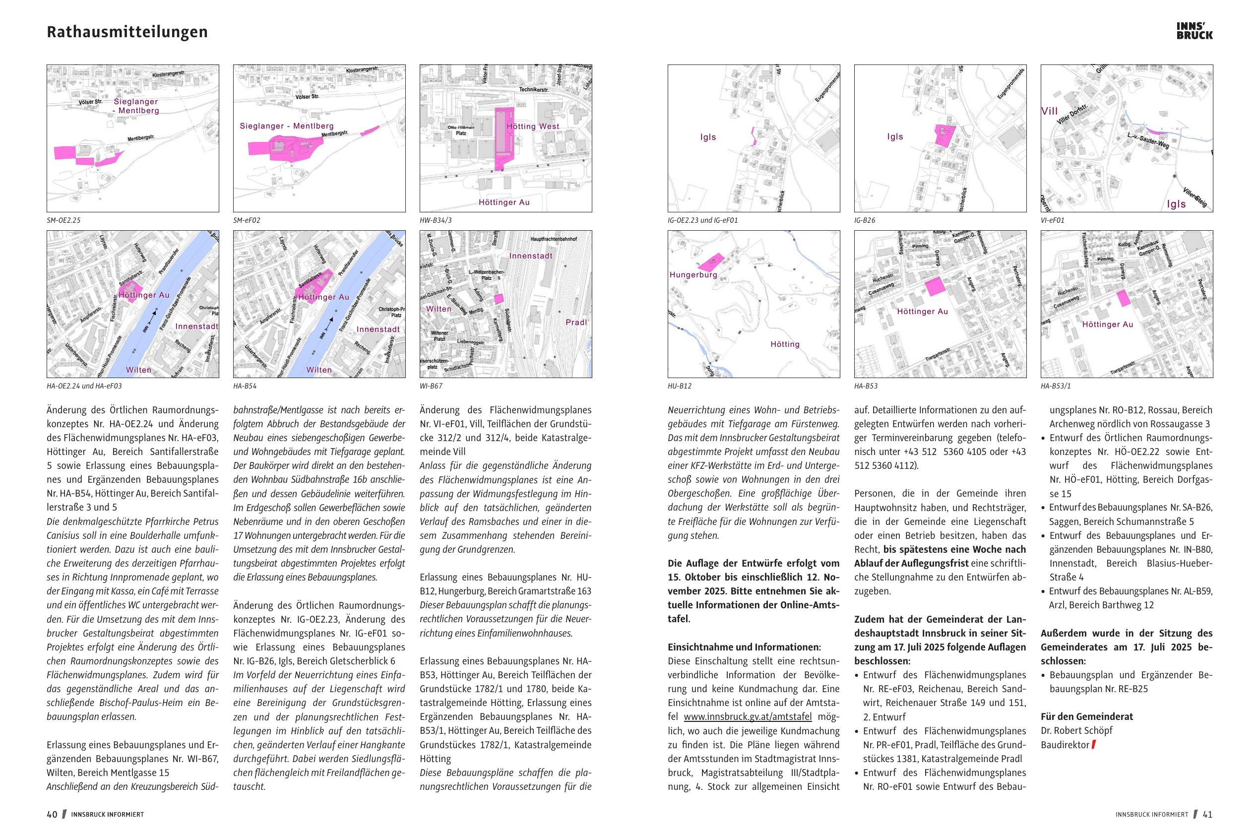 Nr. RO-eF01 sowie Entwurf des BebauINNSBRUCK INFORMIERT