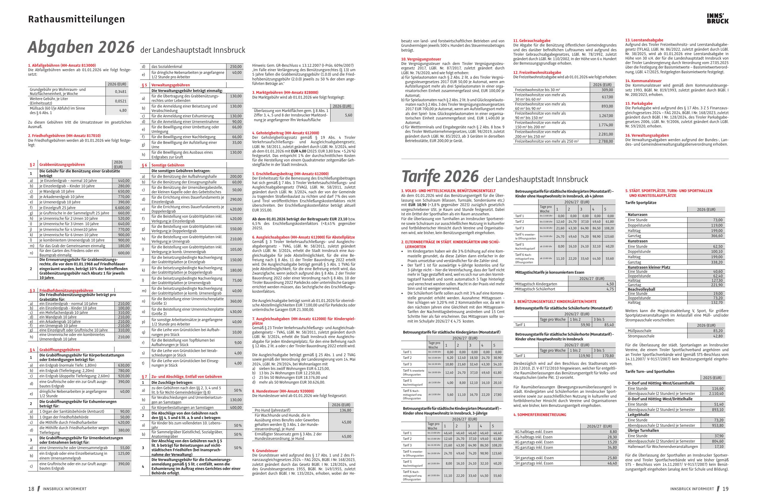 Abgaben 2026 der Landeshauptstadt Innsbruck