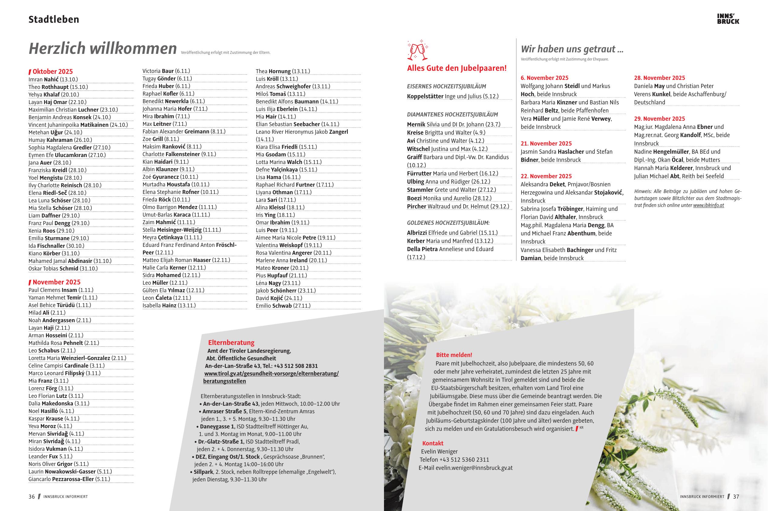 Hinweis: Alle Beiträge zu Jubiläen und hohen Geburtstagen sowie Blitzlichter aus dem Stadtmagistrat finden sich online unter www.ibkinfo.at
