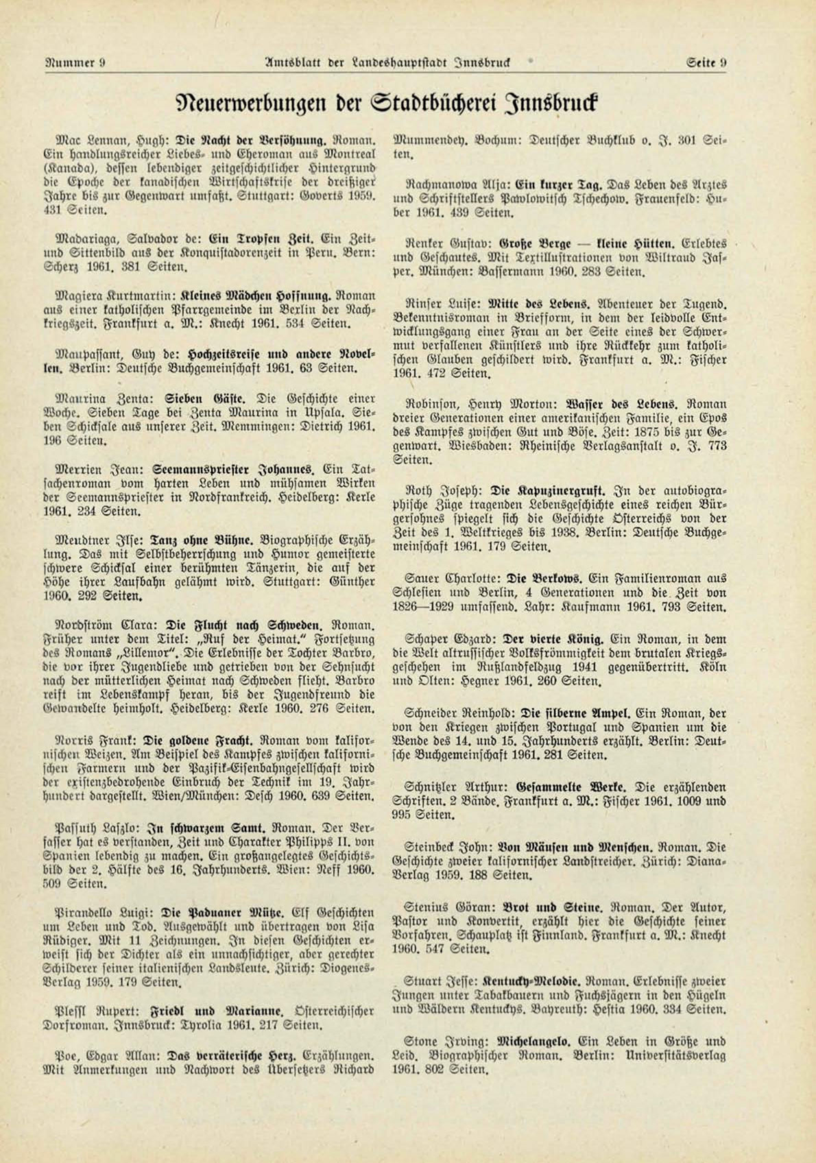 Neuerwerbungen der ^tambucherei Innsbrnck