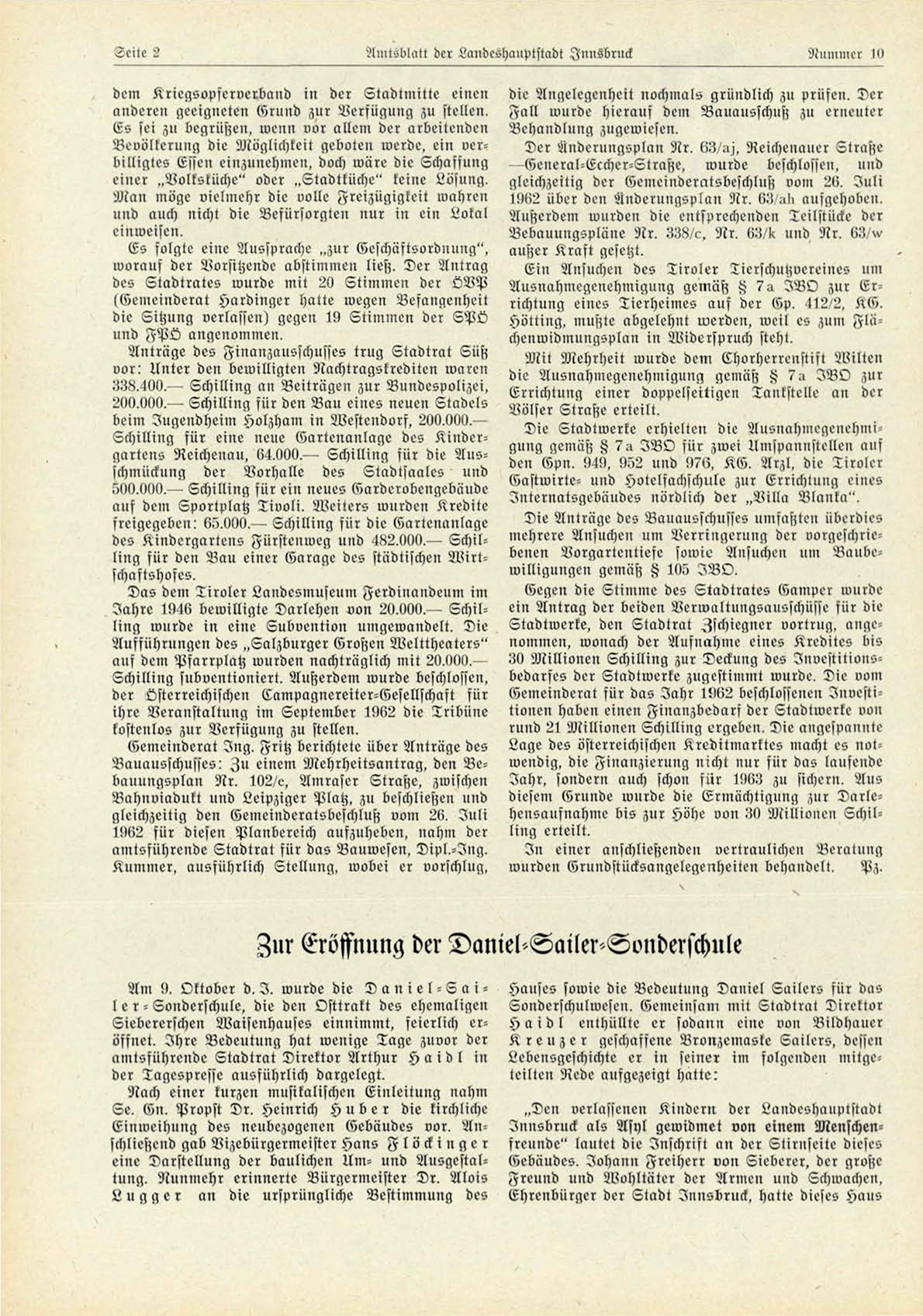 !i0 Millionen Schilling zur Deckung des Investitionsauf dem Pfarrplatz wurden nachträglich mit 20.000.—