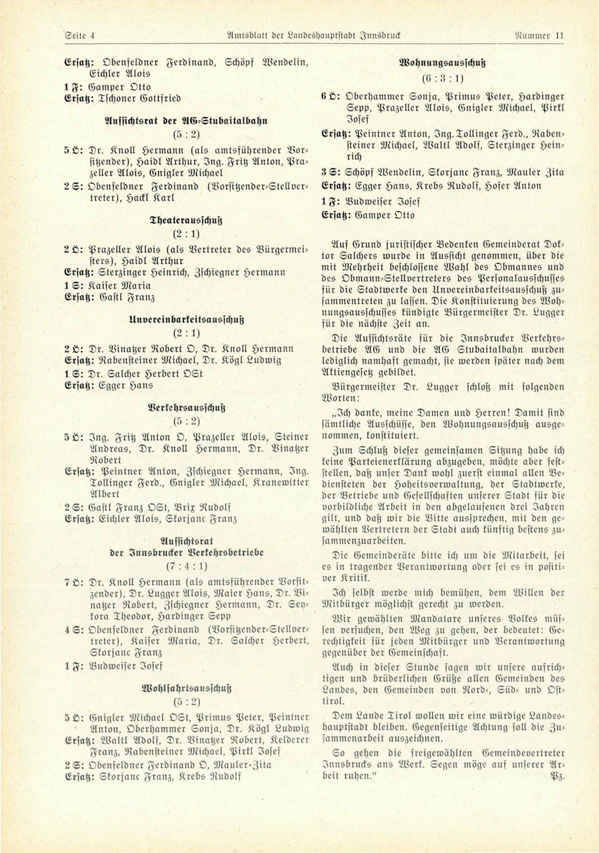 Dem Lande T i r o l wollen wir eine würdige Landeshauptstadt bleiben. Gegenseitige Achtung soll die Zusammenarbeit auszeichnen.