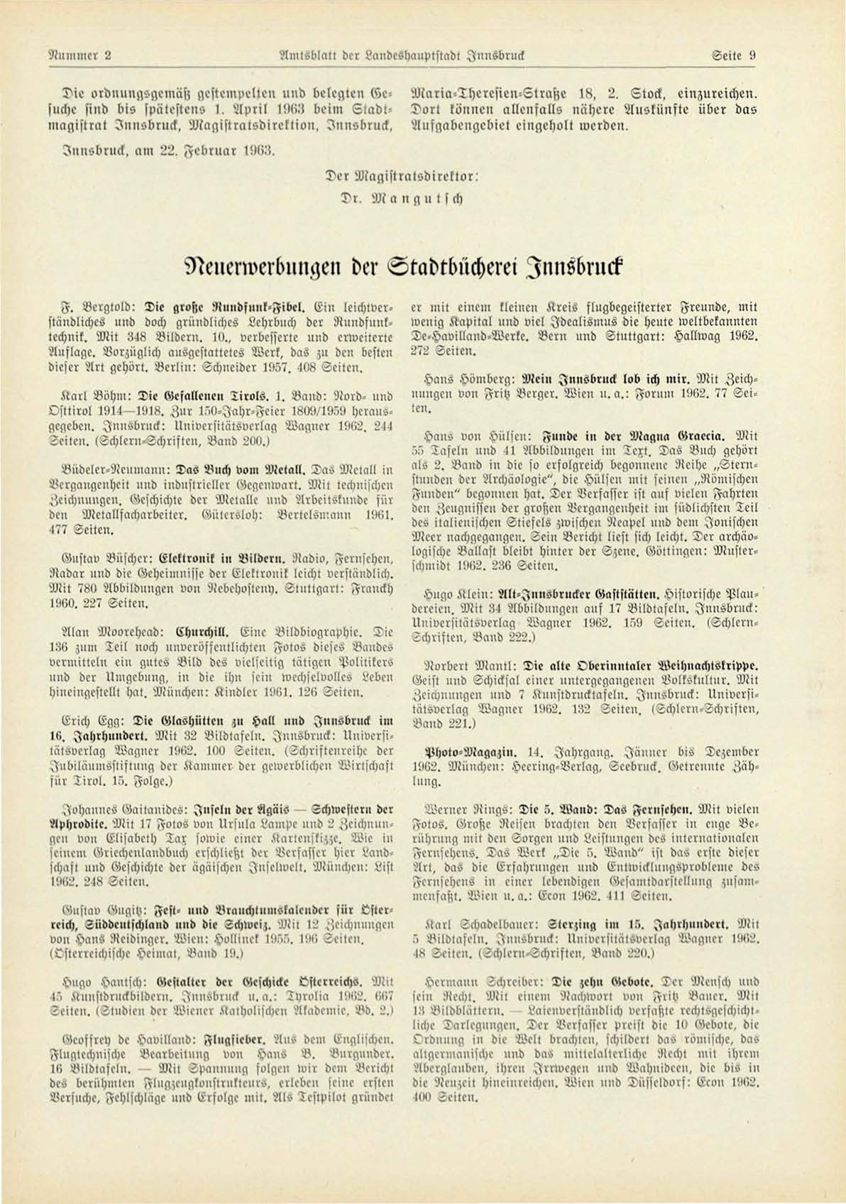 der ^tadtbncherei Innsbruck