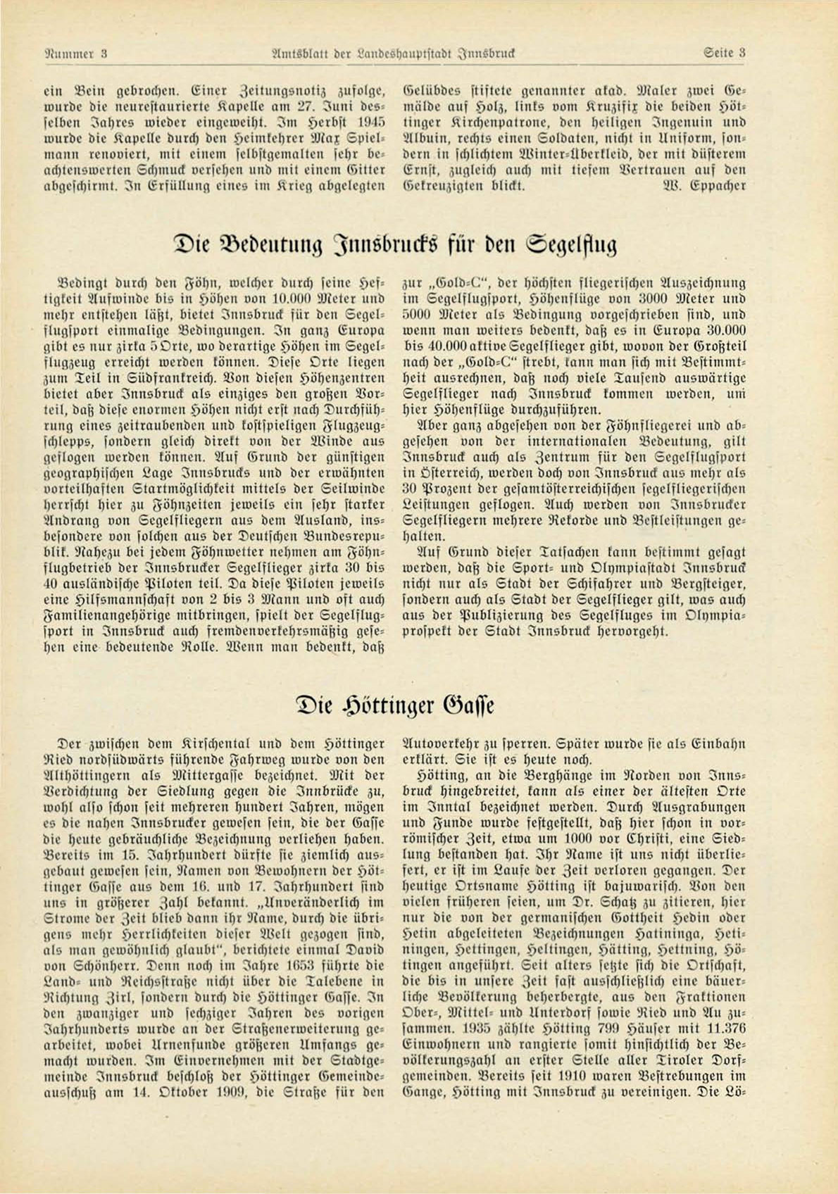 Andrang von Segelfliegern aus dem Ausland, insbesondere von solchen aus der Deutschen Bundesrepublik. Nahezu bei jedem Föhnwetter nehmen am Föhnflugbetrieb der Innsbrucker Segelflieger zirka 30 bis