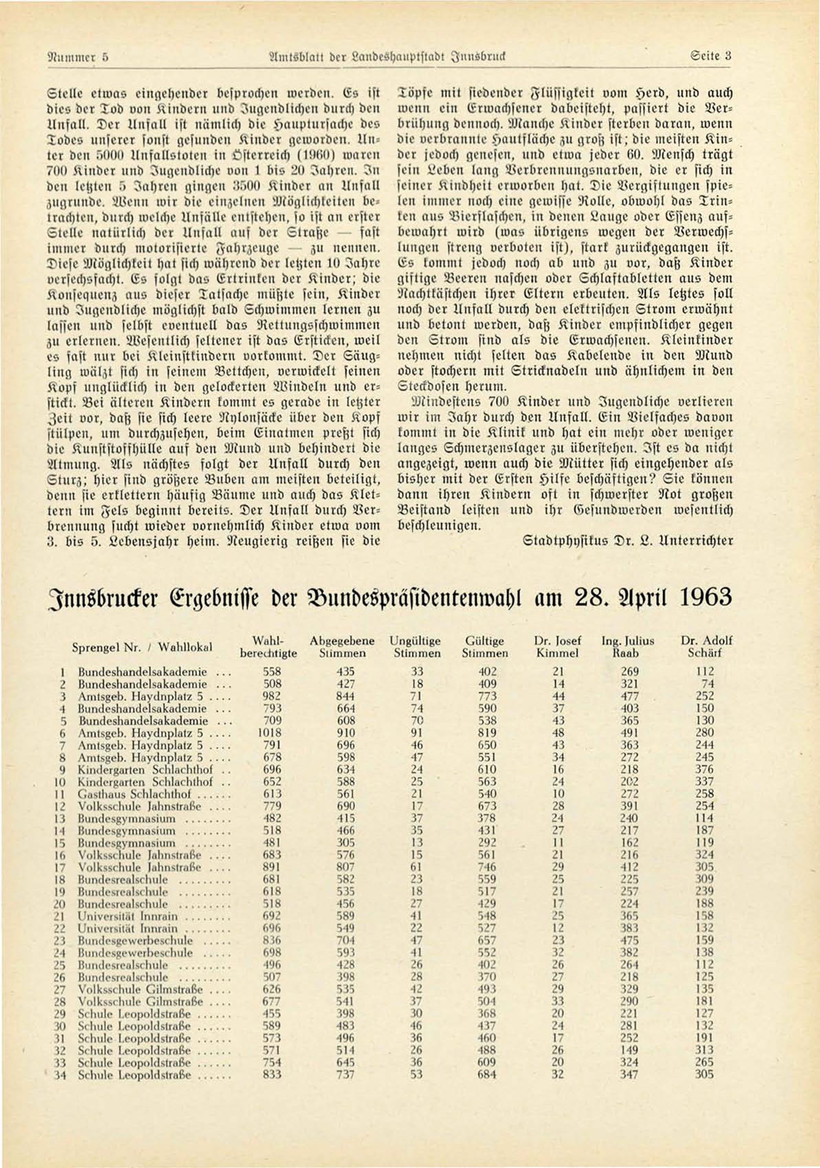 Innsbrucker Ergebnisse der Bundesprasidentenwahl am 2 8 . April 1963