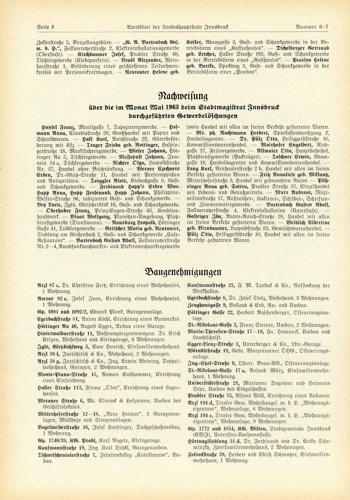 über die im Monat M a i 1963 beim Stadtmagistrat Innsbruck