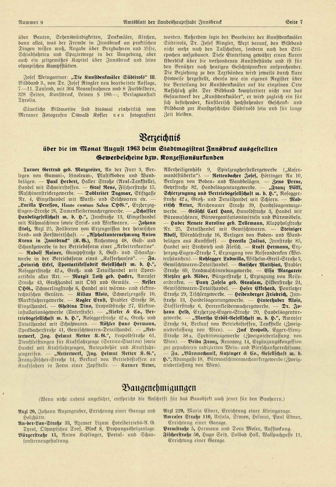 über die im Monat August 1963 beim Stadtmagistrat Innsbruck ausgestellten