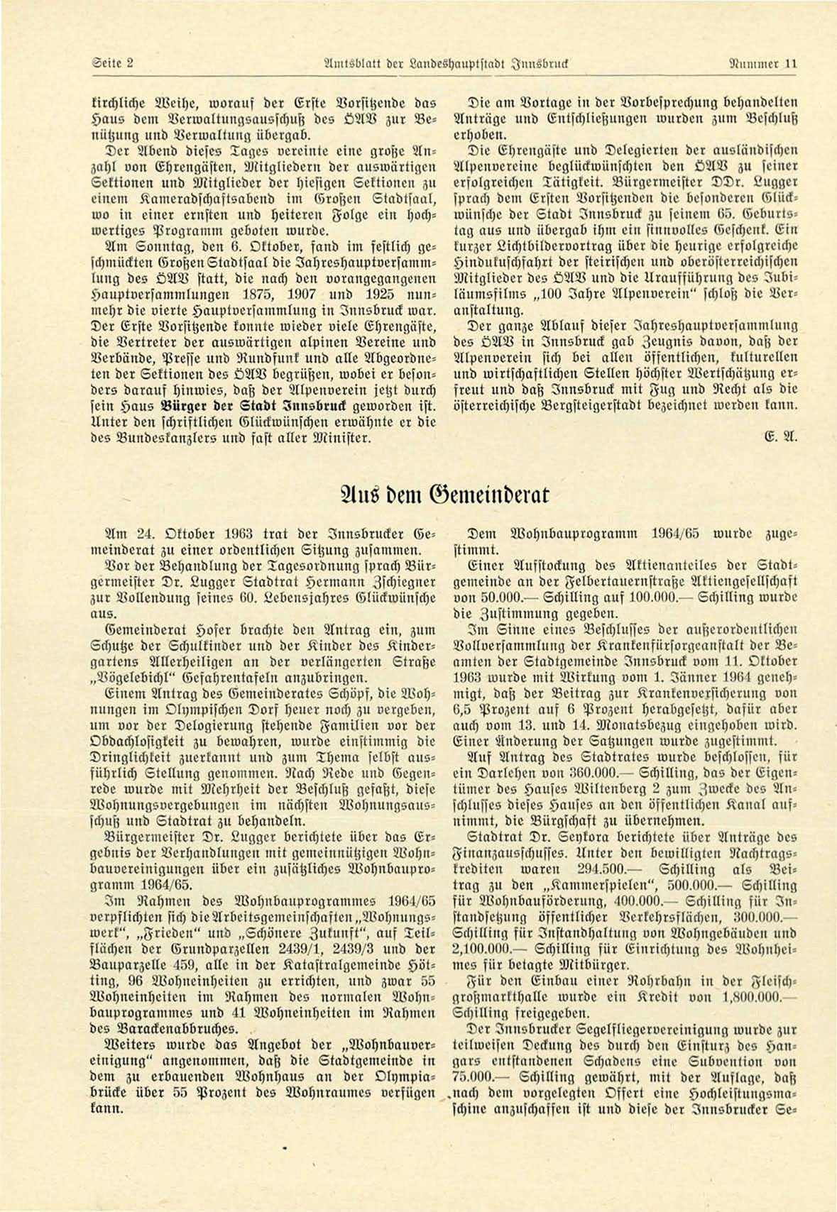 Dem Wohnbauprogramm 1964/65 wurde zugeAm 24. Oktober 1963 trat der Innsbrucker Gestimmt.