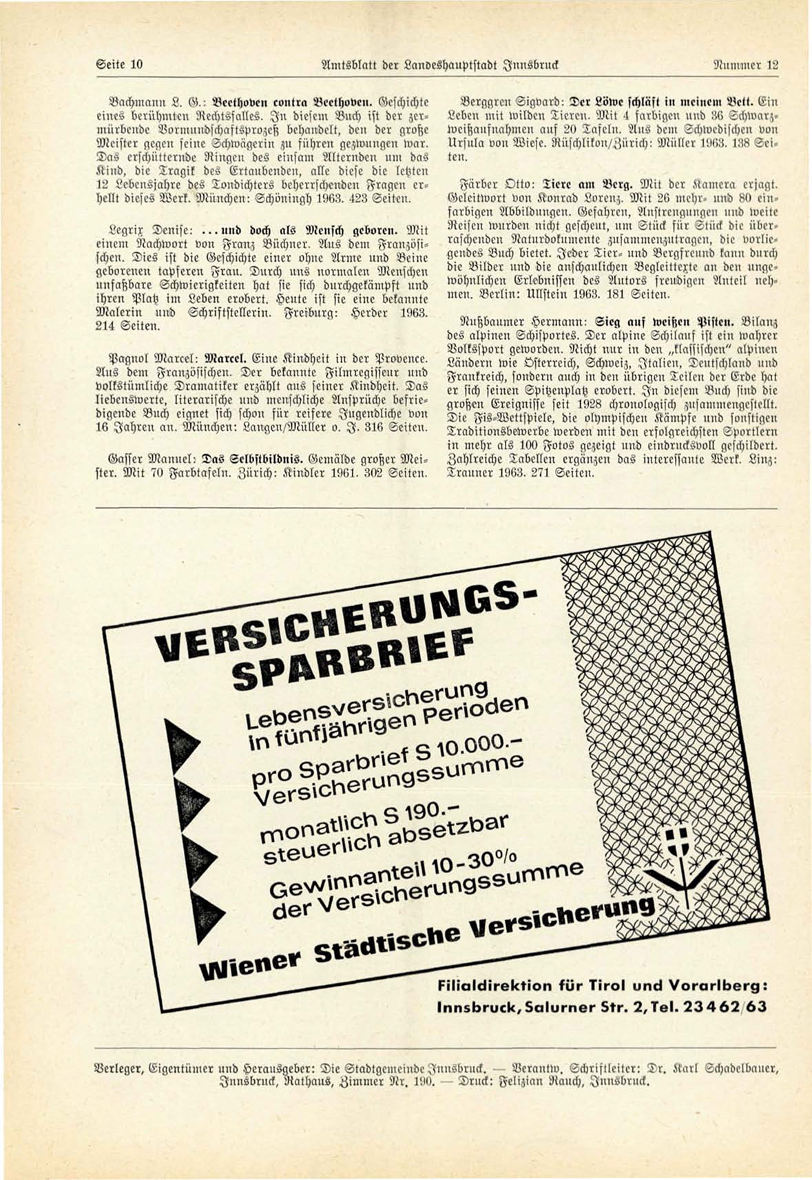 Verleger, Eigentümer nnd Herausgeber: Die Stadtgemeinde Innsbruck.
