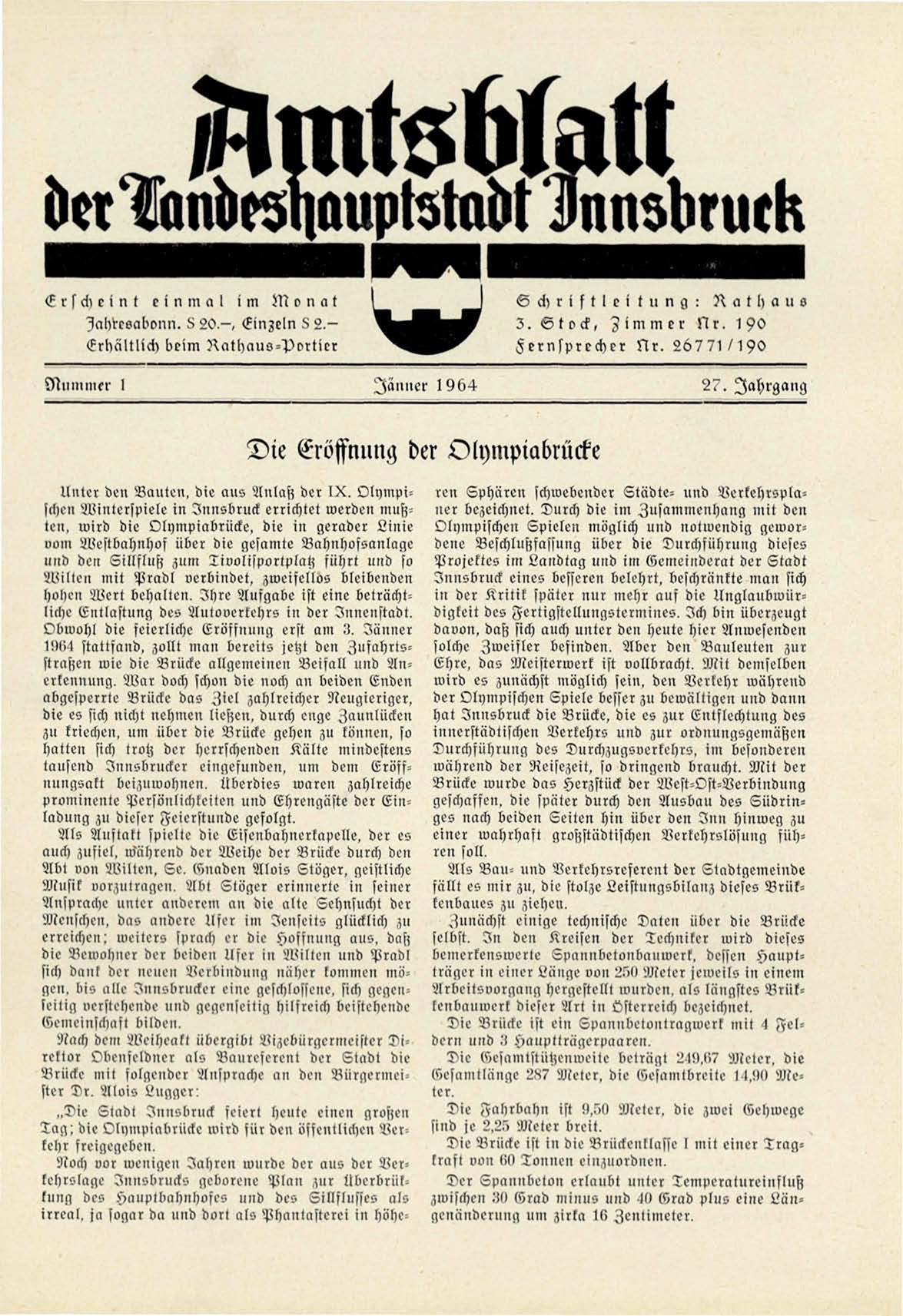 „Die Stadt Innsbruck feiert hen Tag" die Olympiabrücke wird sur den össenllichen Ver