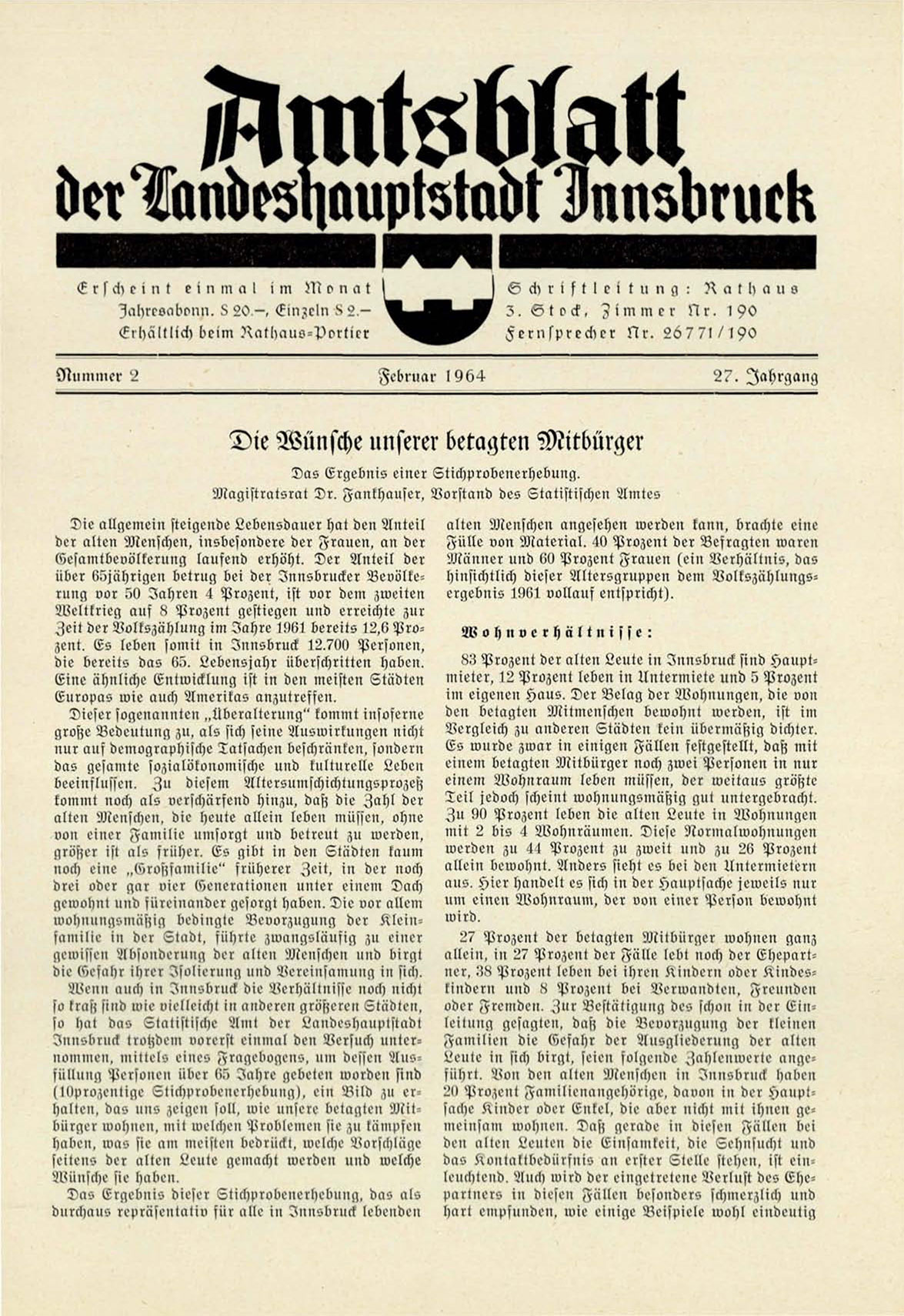 über 65jährigen betrug bei der Innsbrucker Bevölkerung vor 50 Jahren 4 Prozent, ist vor dem zweiten