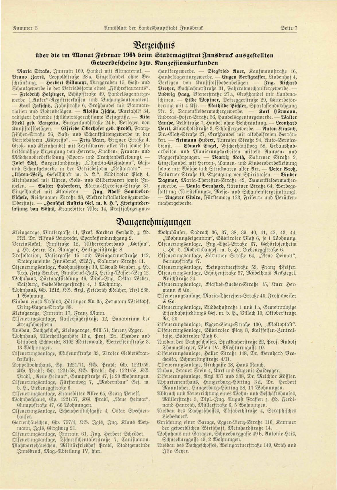 über die im Nlonat Februar 1NN?< beim S t a d t n l a q i s t r a t I n n s b r u c k a u s g e s t e l l t e n