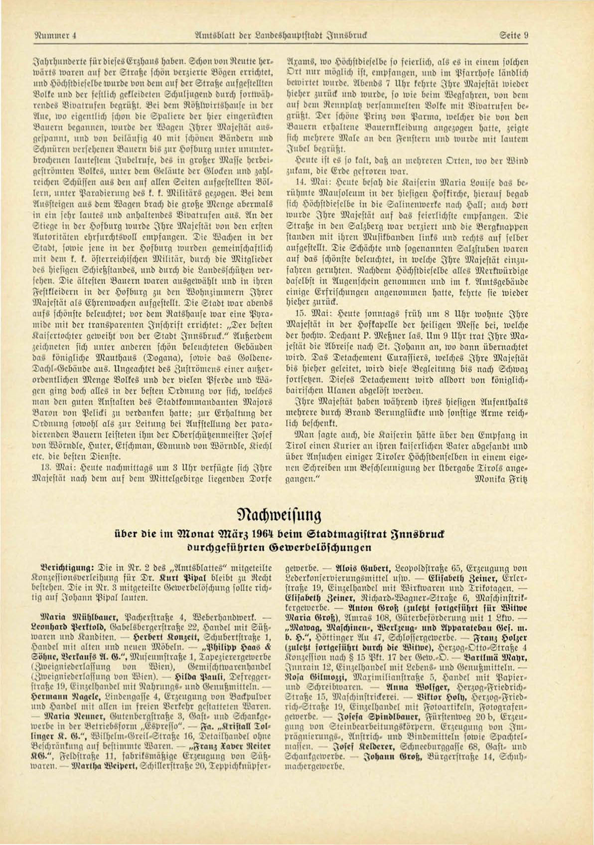 über die im Monat März 196^ beim Stadtmagistrat Innsbruck