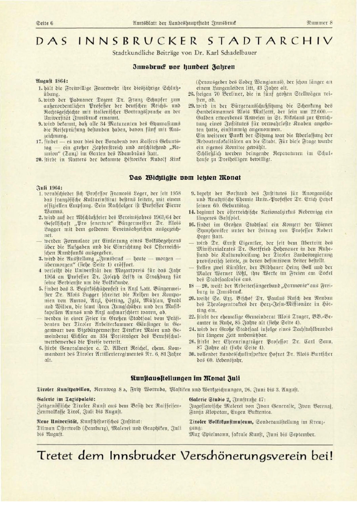 3. wird die Ausstellung „Innsbruck — heute — morgen übermorgen“ (siehe Seite 1) eröffnet.