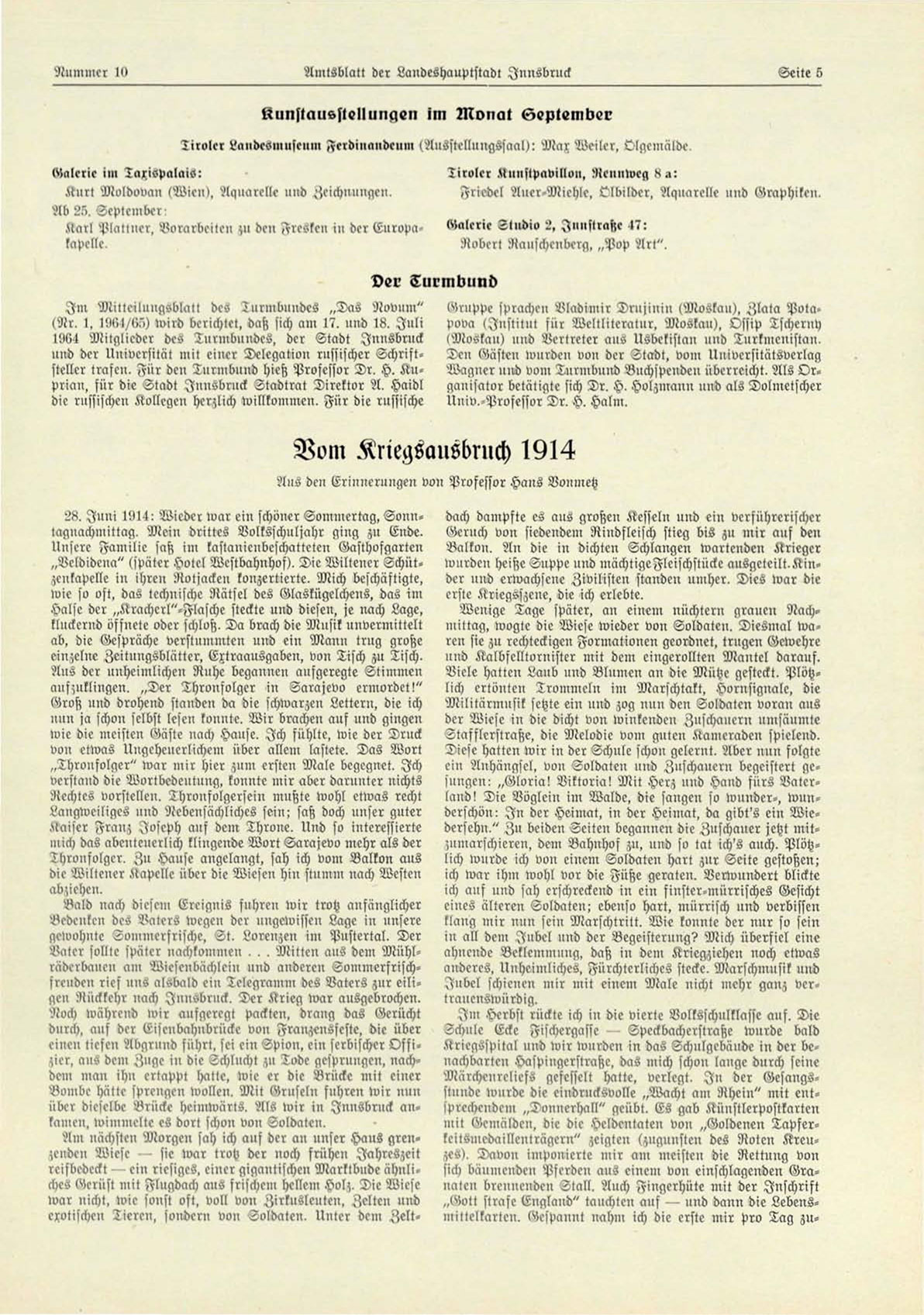 28. I n n i 1914: Nieder war ein schöner Sommertag, Sonnlaguachmittag. M e i n drittes Volksschnljahr ging zn Ende.