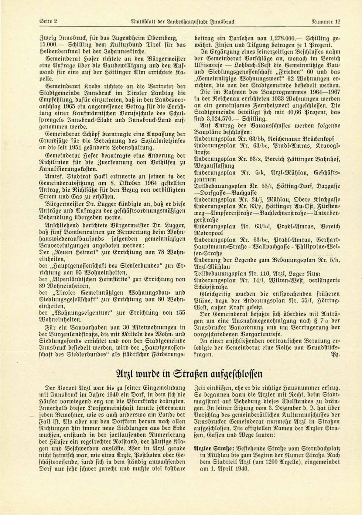 aufgeschlossen. Die offiziellen Namen der Arzler Straßen. Gassen und Wege lauten!